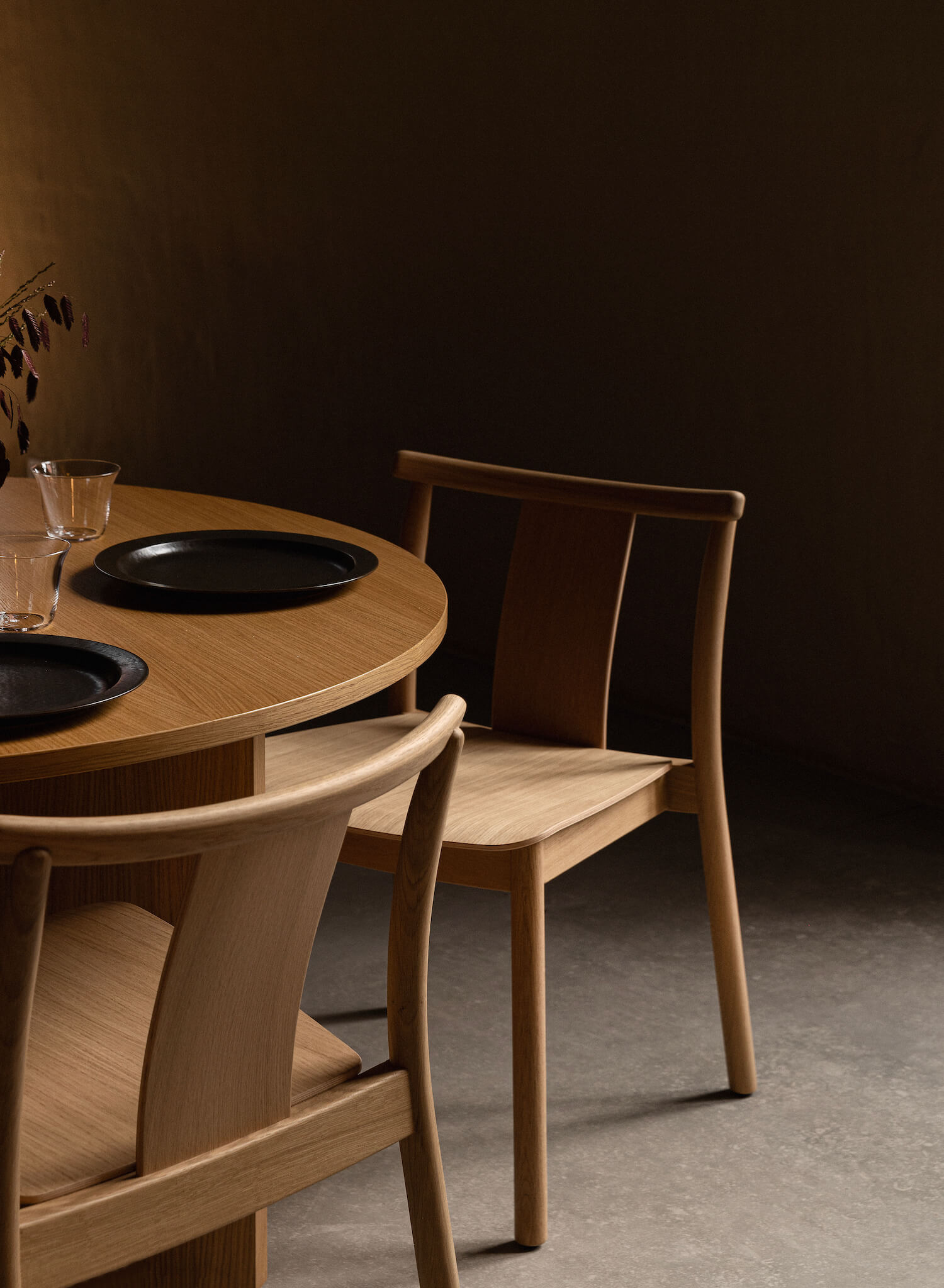 Chair is a minimalist dining chair designed by Oslo-based studio Skogstad & Wærnes for Audo Copenhagen. In an embodiment of classic design principles channeled through a contemporary lens, the chair stands as an homage to traditional Norwegian craftsmanship. Initially conceptualized for the emblematic Oslo Stock Exchange, this modern rendition of a dining chair showcases simplicity and refinement. The production process of the chair leverages age-old woodworking methods, bestowing upon it a distinct air of timeless elegance. Its construction solely from solid wood adds an enduring charm that doesn’t surrender to fleeting design trends. An option for armrests exists, tailoring the chair’s design to fit various user needs and preferences. For those desiring an added layer of comfort, the Merkur can be personalized with partial upholstery. The material choices span a curated selection of exquisite fabrics and leathers, offering a customizable aesthetic appeal.