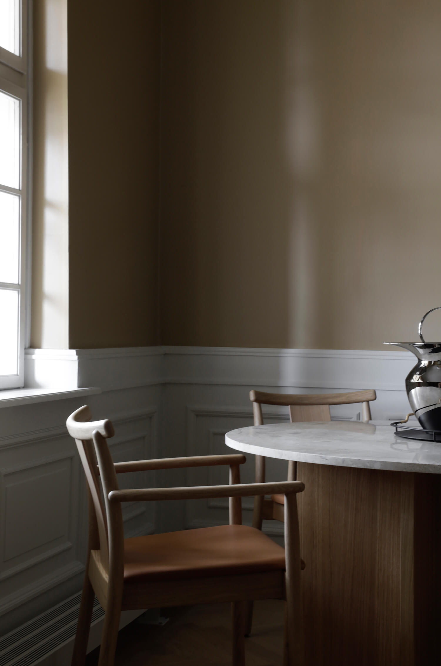 다이닝 체어는 오슬로에 본사를 둔 스튜디오 스코그스타드 & 베른스가 아우도 코펜하겐을 위해 디자인한 미니멀리즘 다이닝 체어입니다. 현대적인 렌즈를 통해 채널이 흐르는 고전적인 디자인 원칙의 구현으로, 노르웨이의 전통적인 장인정신에 대한 오마주로서 서 있습니다.