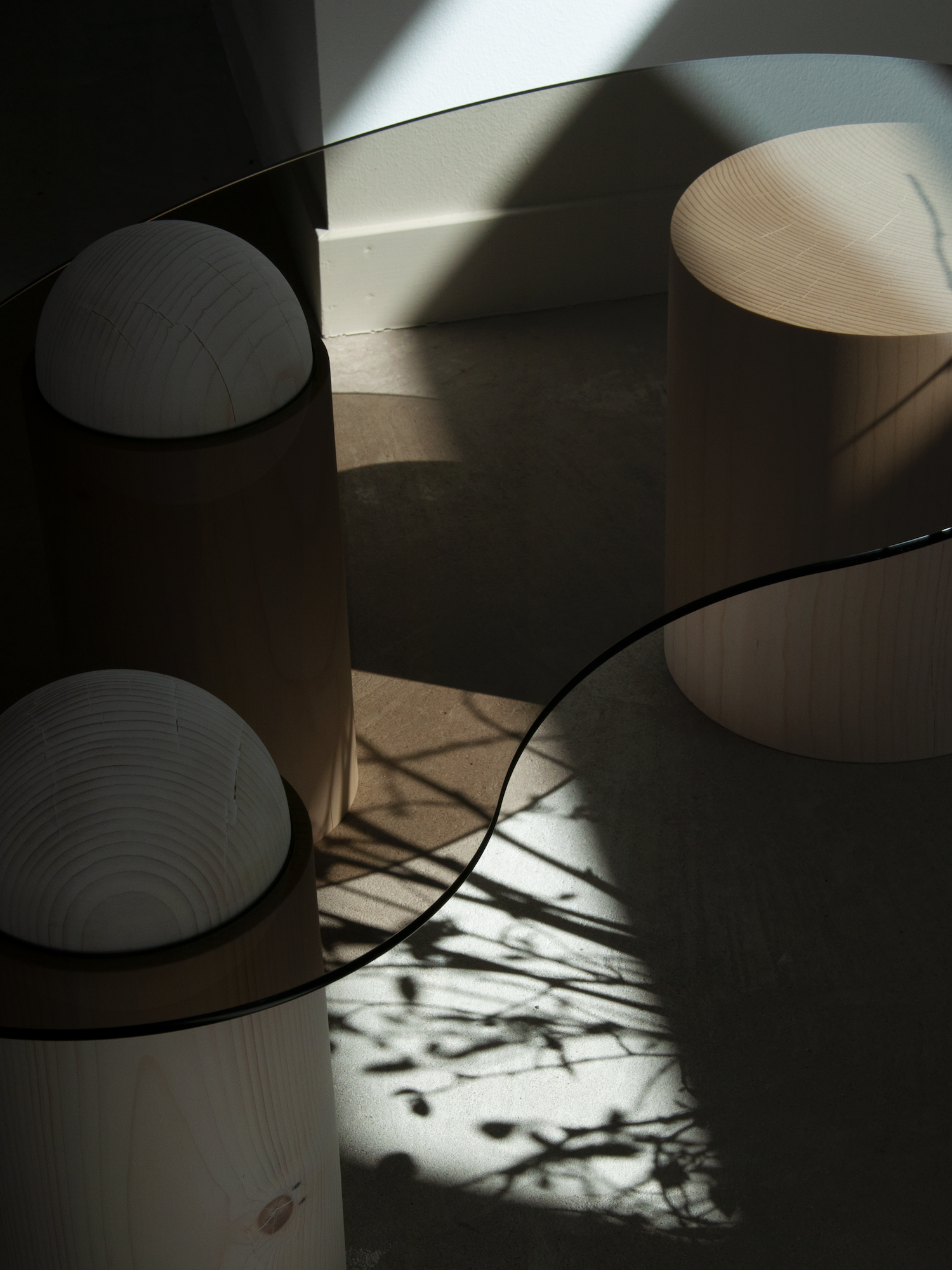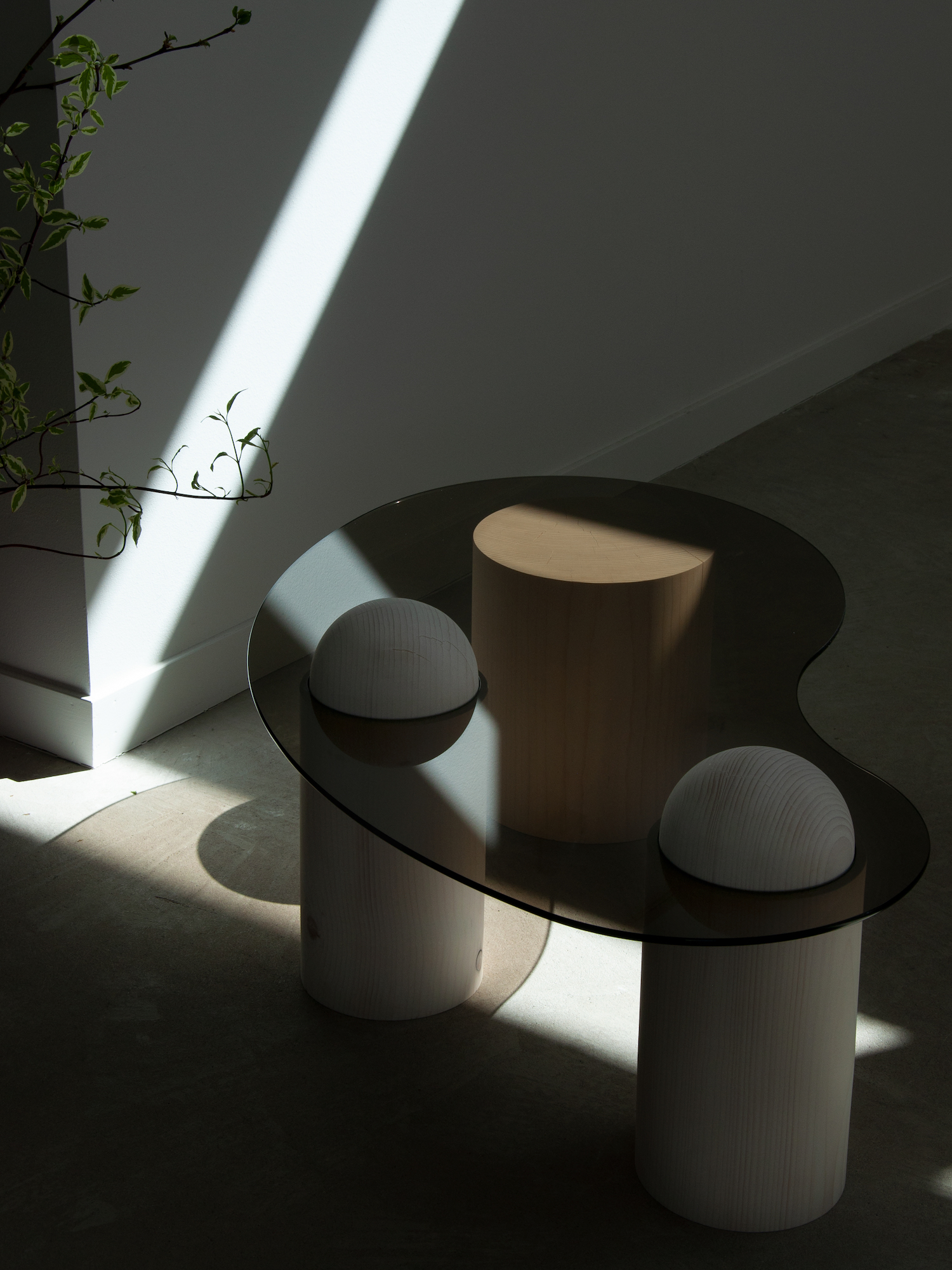 테이블 상판을 뚫고 들어오는 요소와 노출되지 않은 요소를 미묘하게 포착하여 유니크한 형태의 테이블입니다.