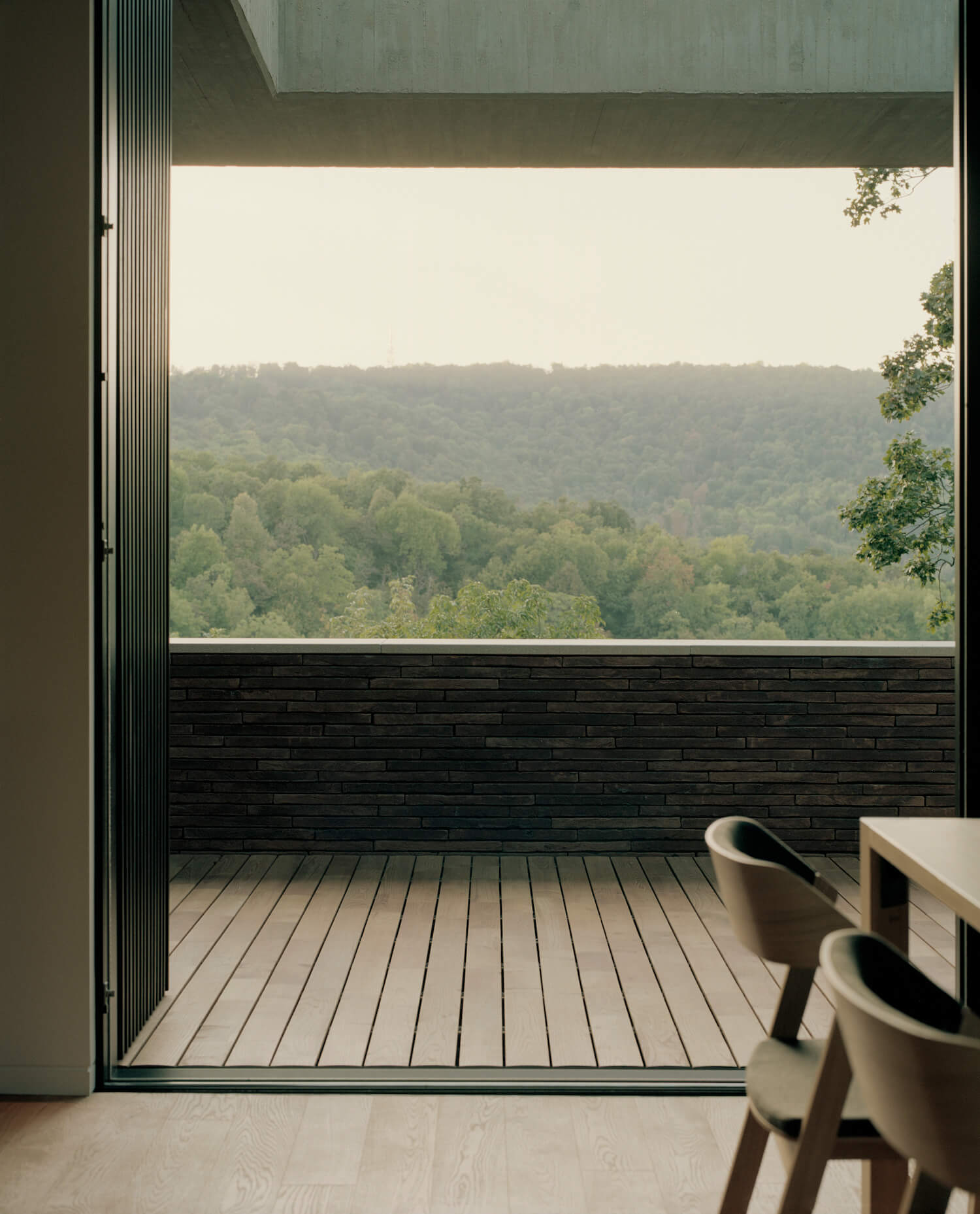 중앙 공간은 빛의 유입뿐만 아니라 빌라 배치의 중심이며 위층에는 생활공간이 있고, 아래층에는 개인 공간이 있습니다. 이 두 공간 모두 언덕과 전망대를 바라보며 아름다운 풍경을 구경할 수 있습니다.