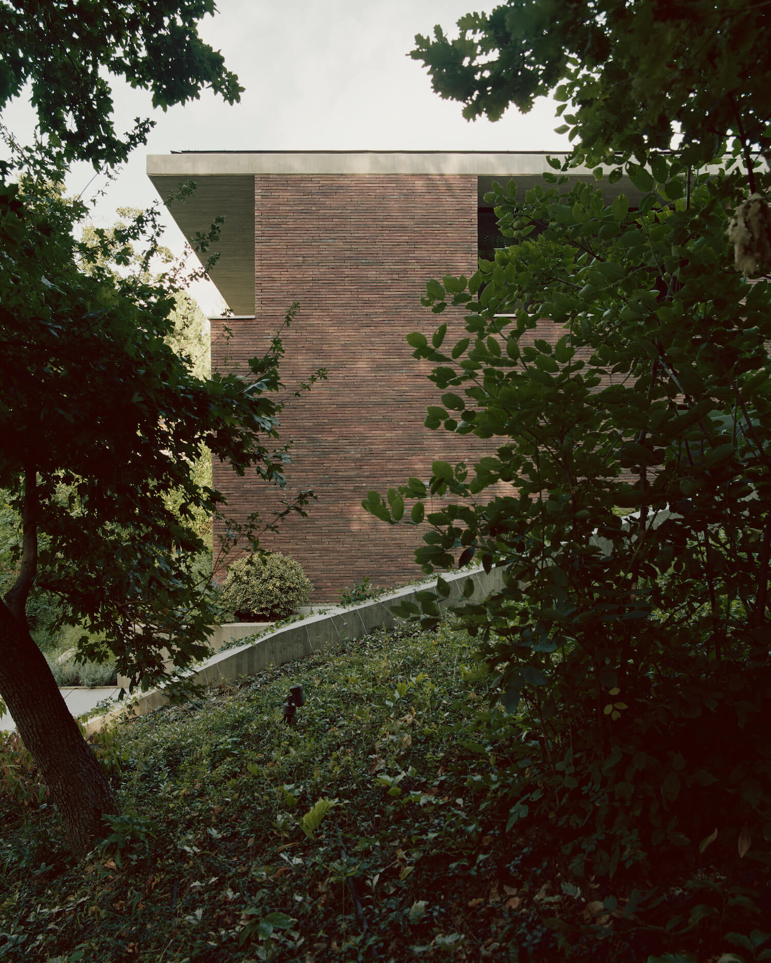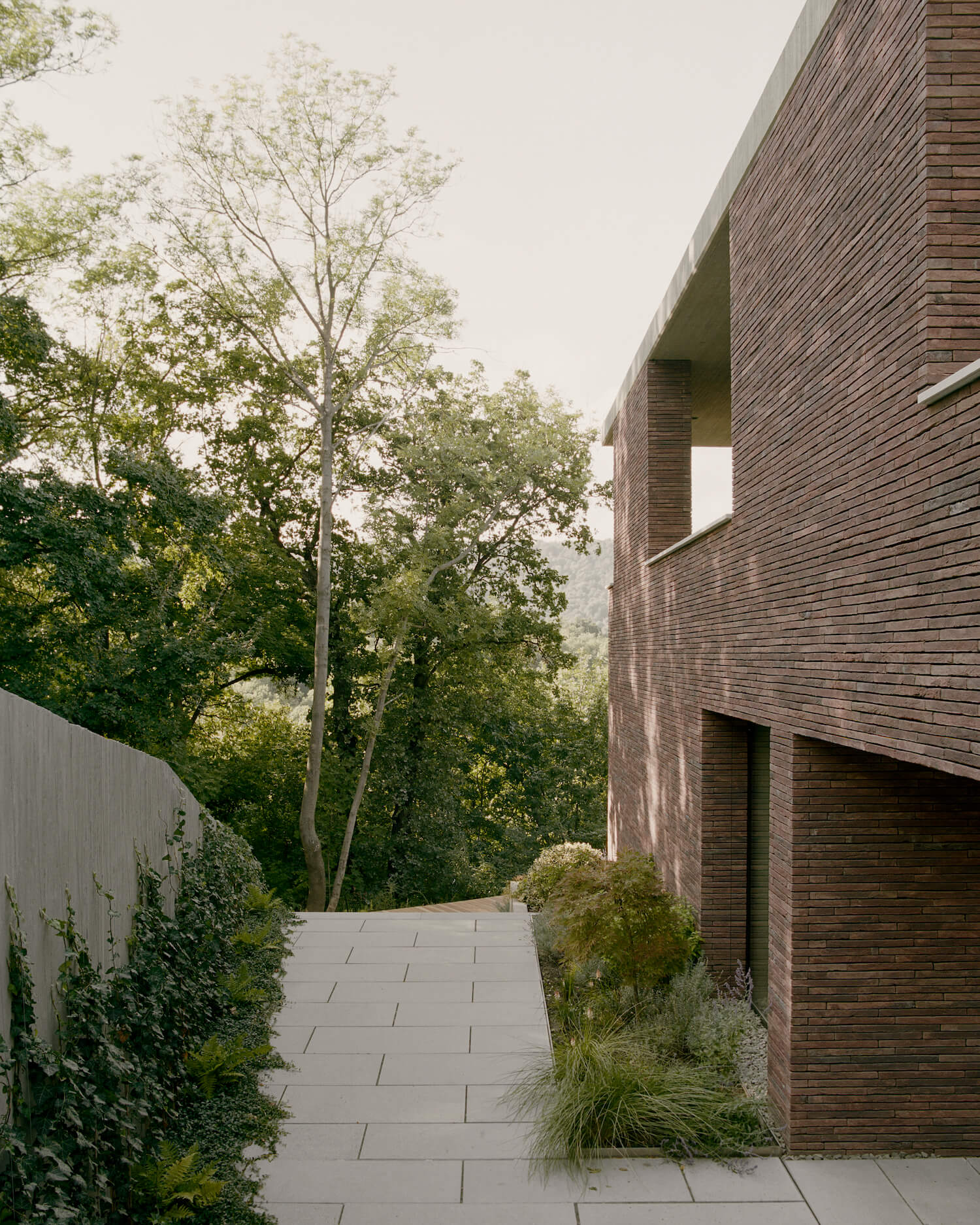 외관은 구조용 콘크리트의 견고함과 내구성을 위해 통풍이 되는 길쭉한 벽돌 피복재를 사용하였습니다. 도장 목재 패널은 지붕의 후퇴된 표면을 장식하였으며 문과 창문은 검은색 알루미늄을 선택하였습니다. 내부적으로는 노출 콘크리트 빔과 목재 지붕 구조로 공간을 규정하여 건축적 특징을 강화하는 미니멀리즘 인테리어 악센트를 가능하게 하는 등 재료적 이중성을 나타냅니다.