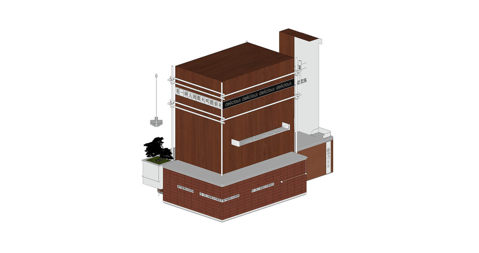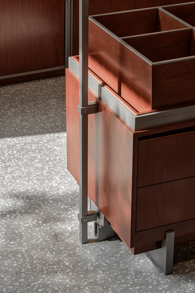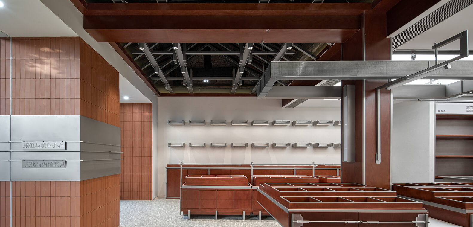 현대적인 관점에 부합하는 디자인을 제시하기 위해 전통적인 요소를 해체, 재조합하며 현대적인 금속 부품으로 장식했습니다. 새로운 재료와 기존 건물의 목재, 타일 재료를 충돌시켜 공간에 시각적 긴장감을 형성하였으며 대중은 전통과 현대가 종합적으로 결합된 베이커리 실내를 경험할 수 있게 되었습니다.