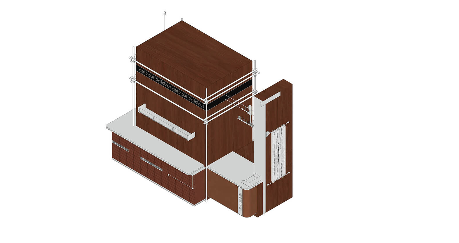 현재 소비자 습관에 맞춰 매장 전면 디스플레이 공간을 설계하며 현대적인 시스템을 갖추었습니다. 또한 오래된 페이스트리 포장에서 요소를 추출하여 디스플레이 선반과 판매 공간에 적용함으로써 브랜드의 독특한 개성과 자성을 보여주고 있습니다.