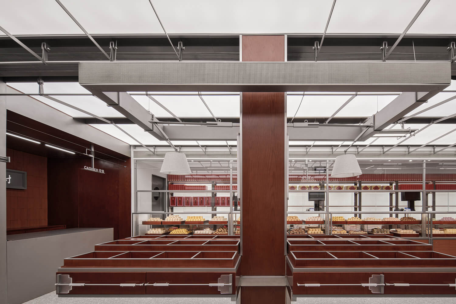 현대적인 관점에 부합하는 디자인을 제시하기 위해 전통적인 요소를 해체, 재조합하며 현대적인 금속 부품으로 장식했습니다. 새로운 재료와 기존 건물의 목재, 타일 재료를 충돌시켜 공간에 시각적 긴장감을 형성하였으며 대중은 전통과 현대가 종합적으로 결합된 베이커리 실내를 경험할 수 있게 되었습니다.