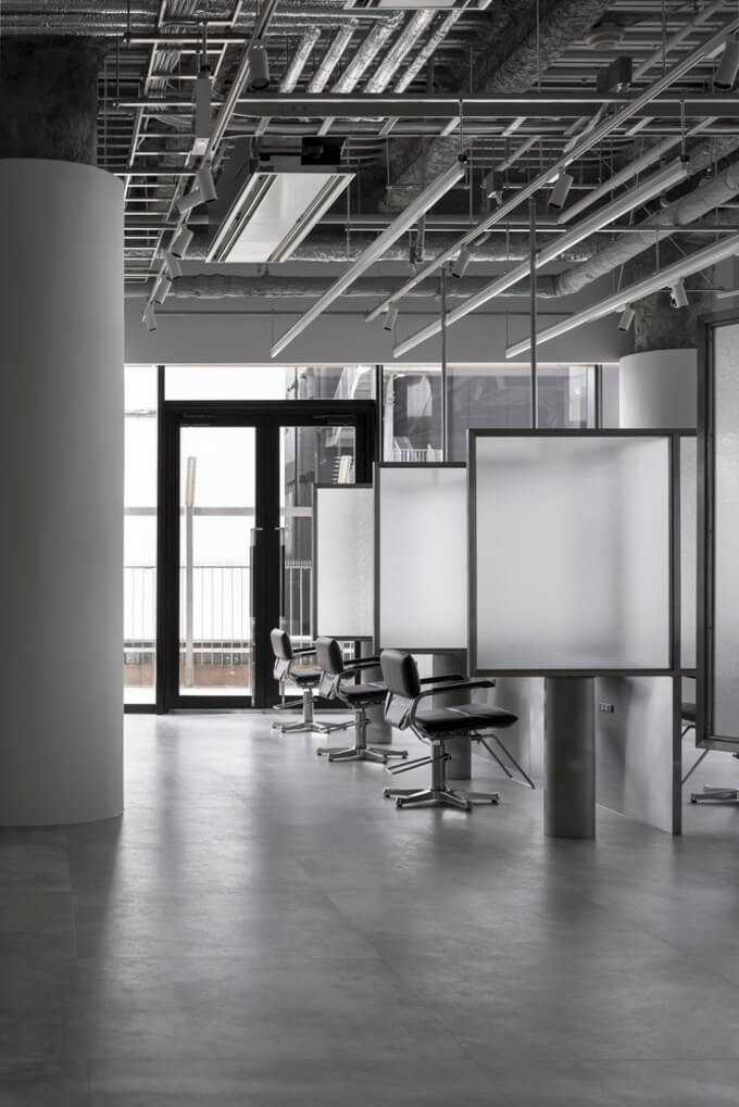 최대한 많은 좌석을 확보하면서도 밀폐된 느낌을 줄이기 위해 현장에 벽을 세워 프라이빗 룸을 만드는 기존의 방식에서 벗어나기로 결정했습니다. 대신 공장에서 제조한 1800mm 높이의 거울 일체형 유리 파티션을 가구처럼 배치했습니다.