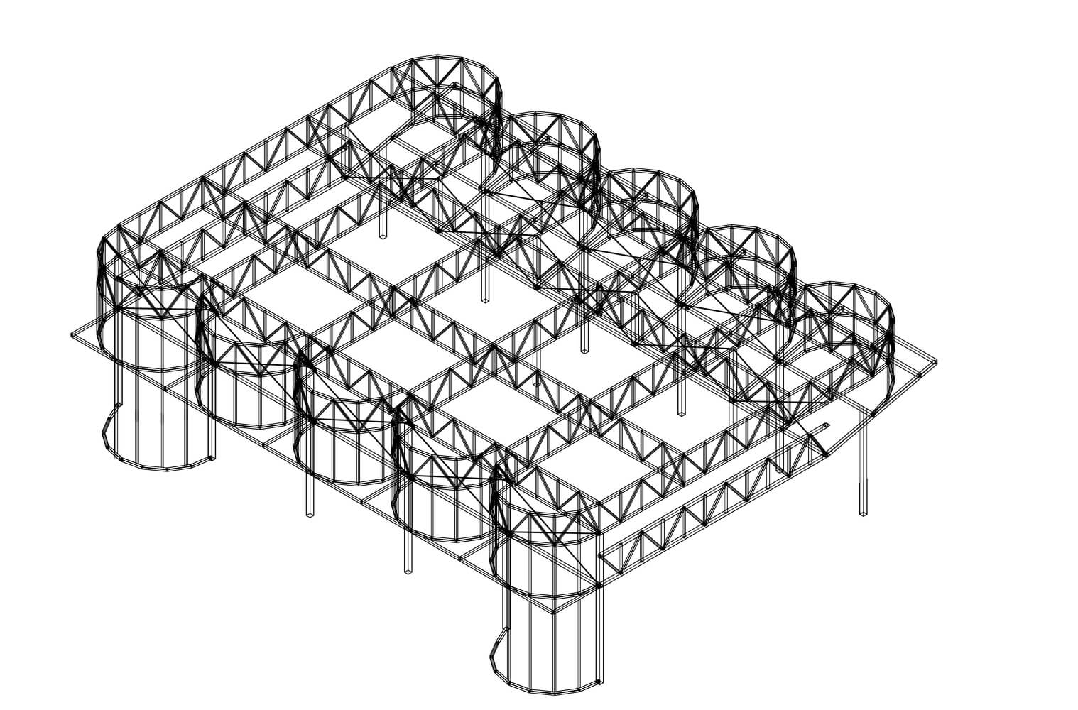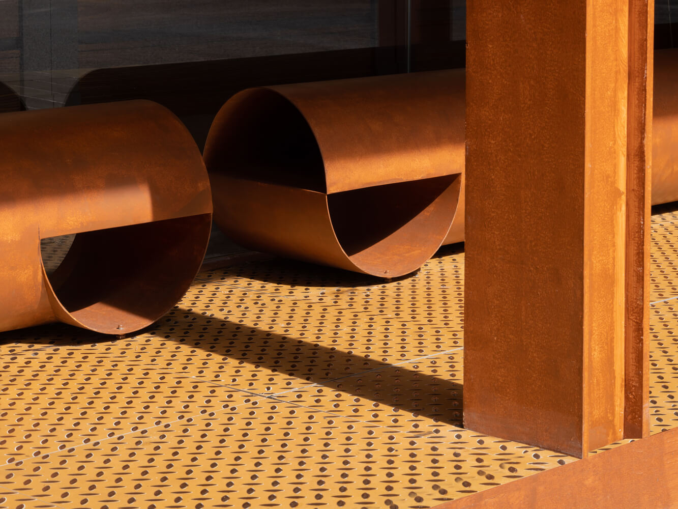 건축 전체 현장을 덮기 위해 강철 실린더를 사용하였습니다. 건물 정면을 캐노피의 기울어진 기둥 가장자리로 설정하였으며 단을 높여 부지의 경계가 확장되어 도시적인 개방 공간을 극대화시켰습니다.