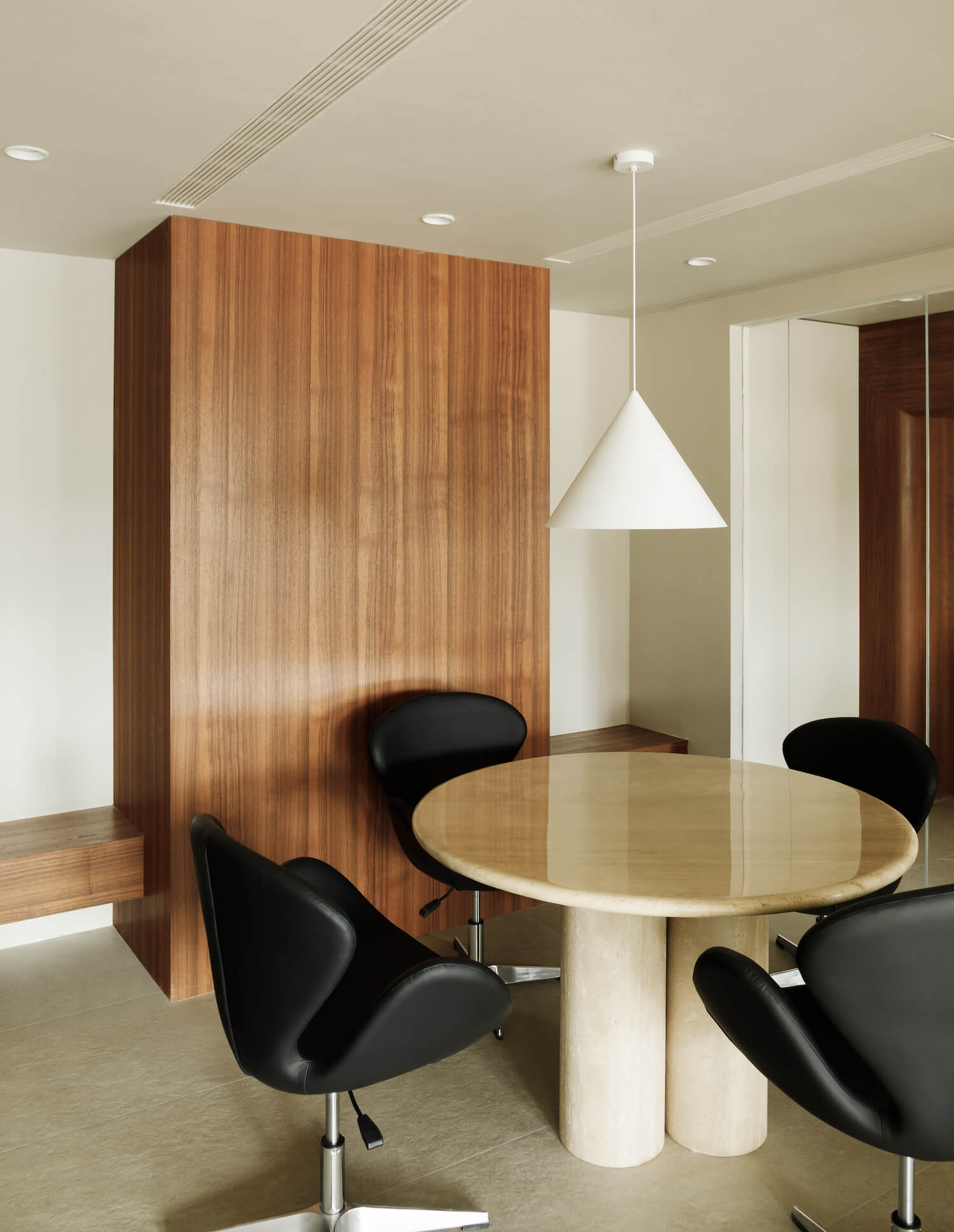 이 공간은 주요 측면은 전통적인 사무실 환경을 변화시키는 것입니다. 따라서 조명, 소재, 색상과 같은 요소를 도입하여 차분하고 매력적인 분위기를 조성하였습니다. 이런 접근 방식은 기능적일 뿐만 아니라 심리적으로도 고양되는 공간을 만들어 전반적인 업무 경험을 향상했습니다.