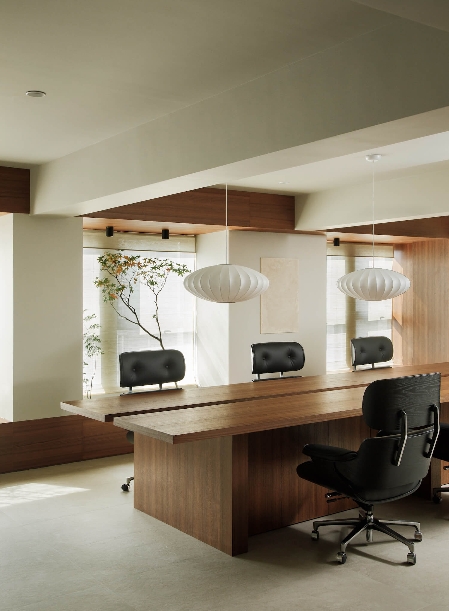 이 공간은 주요 측면은 전통적인 사무실 환경을 변화시키는 것입니다. 따라서 조명, 소재, 색상과 같은 요소를 도입하여 차분하고 매력적인 분위기를 조성하였습니다. 이런 접근 방식은 기능적일 뿐만 아니라 심리적으로도 고양되는 공간을 만들어 전반적인 업무 경험을 향상했습니다.