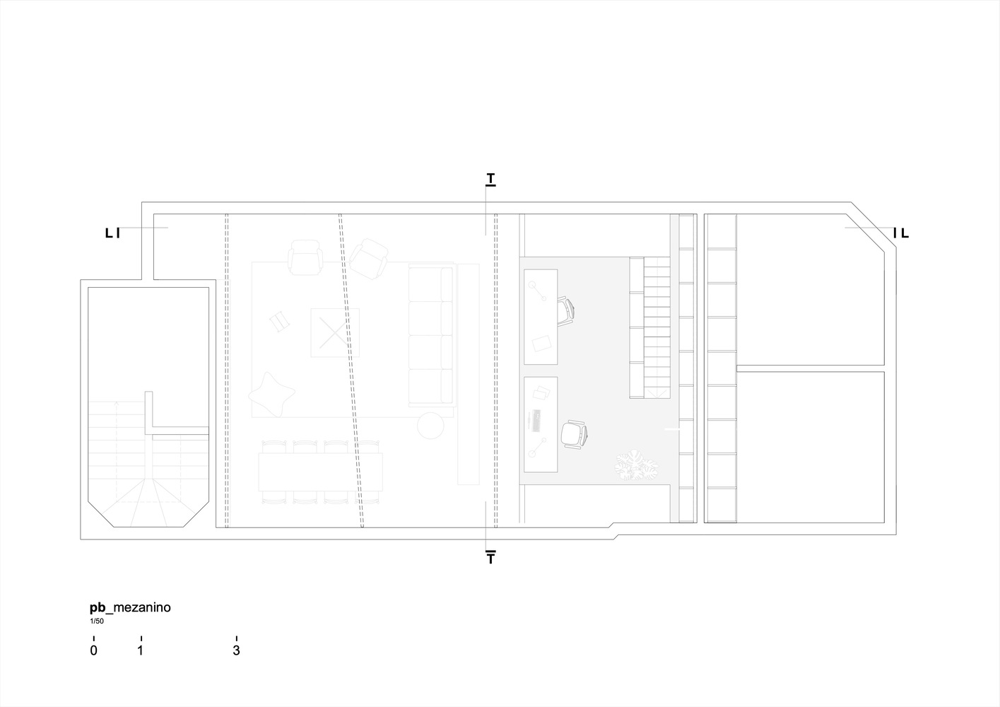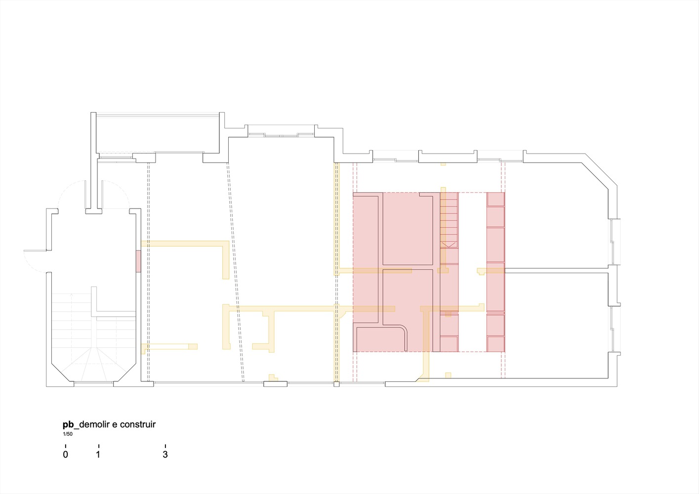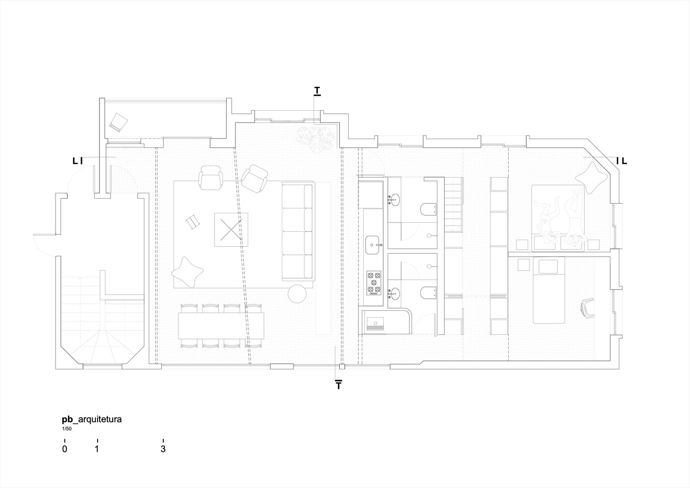 이 만남을 강조하기 위해 치장벽토를 철거하고 점토 벽돌의 일부를 재사용하여 주방, 욕실 2개, 세탁실 및 옷장을 포함하는 새로운 인프라 코어를 구축했습니다. 아파트의 둘레와 지붕에서 분리되어 자연광과 교차 통풍을 보장하기 위해 아파트 전체가 이 요소를 중심으로 회전하며 그 위에 금속 구조물도 배치되어 작업 공간을 위한 메자닌을 만듭니다.
