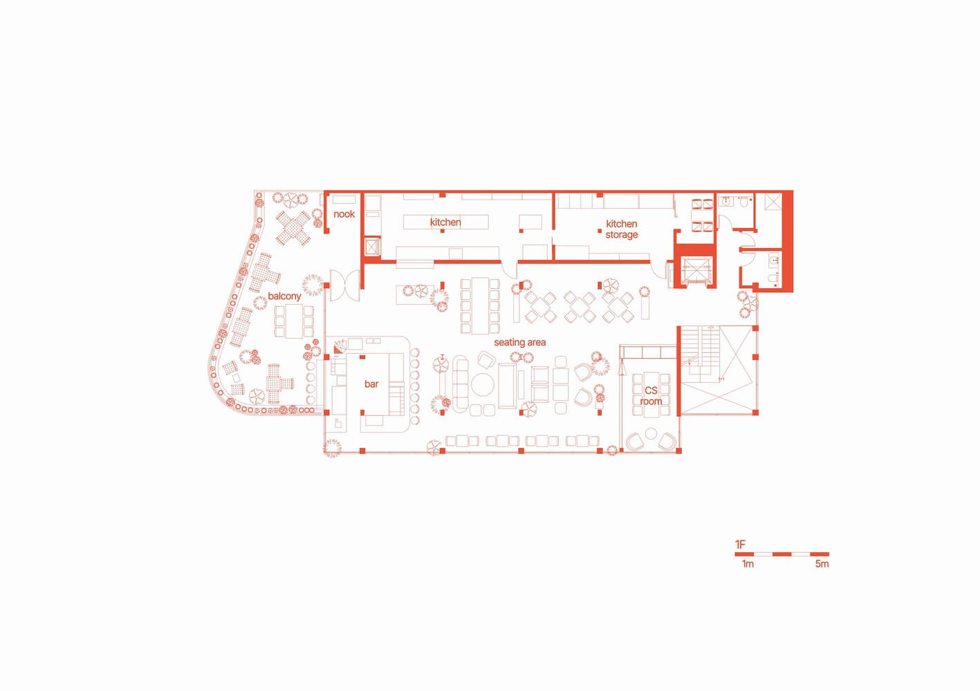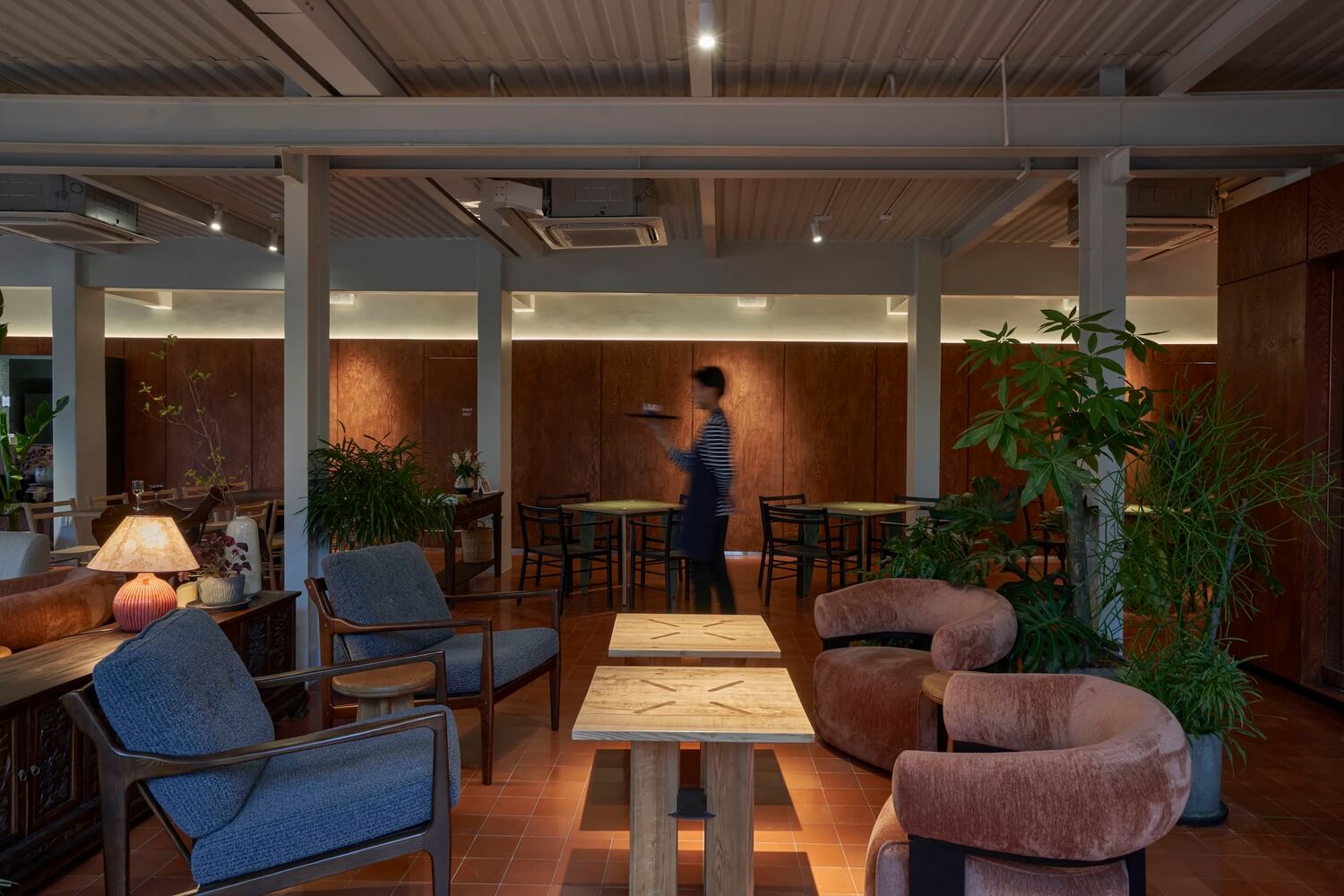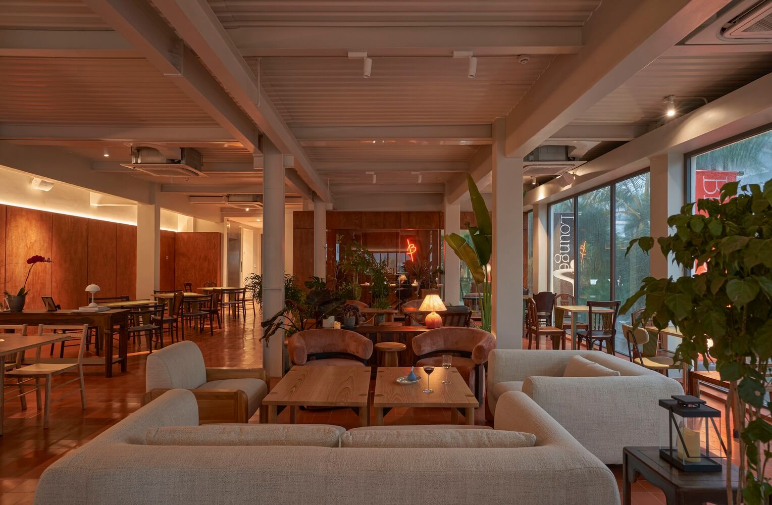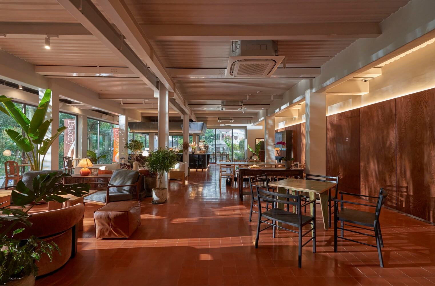 공간 전반에 가구와 식물 선정에 세심한 주의를 기울여 편안한 좌석으로 음식을 먹거나, 휴식을 취할 수 있도록 하였습니다. 특히 식물로 인해 공간을 풍요롭게 만들며 내추럴하고 고급스러운 분위기를 연출하였습니다.