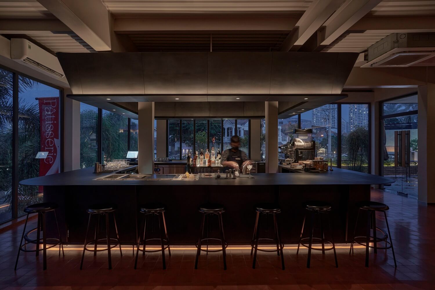 호치민에 위치한 고급스러운 우드 스타일의 레스토랑 인테리어입니다. 현지 프랑스 시장에서 영감을 받아 디자인 및 설계를 진행하였으며 총 3층으로 구성되어 있습니다.