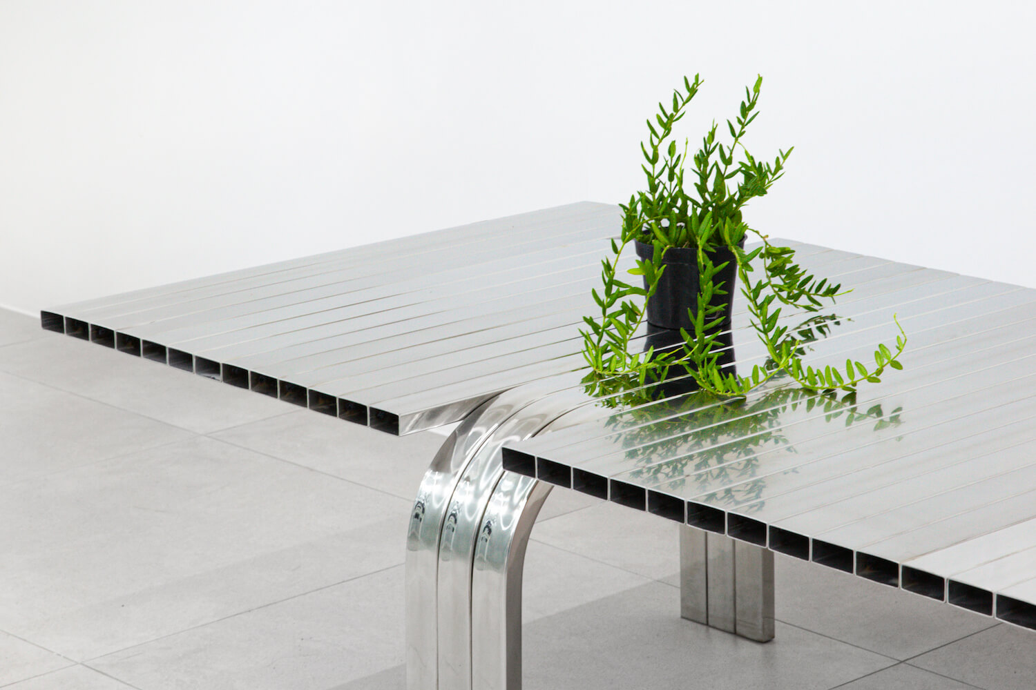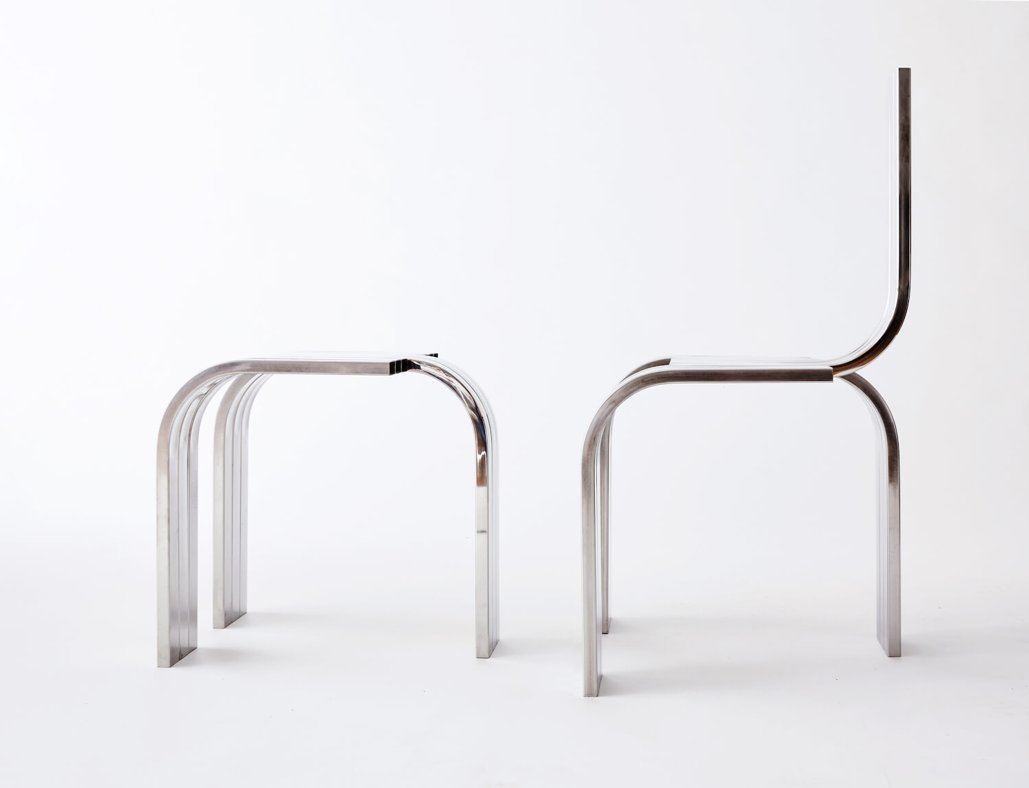 전통적으로 건축, 인테리어, 가구 등의 다양한 프로젝트에서 구조적 요소로 사용되고 있으며 bend시리즈를 통해 산업용 파이프를 절단 및 굽힘 기술을 사용해 미니멀리즘 가구로 탈바꿈시킵니다. 스테인리스 스틸의 고유 품질을 강조하기 위해 컬렉션에 배치된 파이프 표면은 의도적인 스크래치나 반사가 나타나 세련된 개성을 더해줍니다.