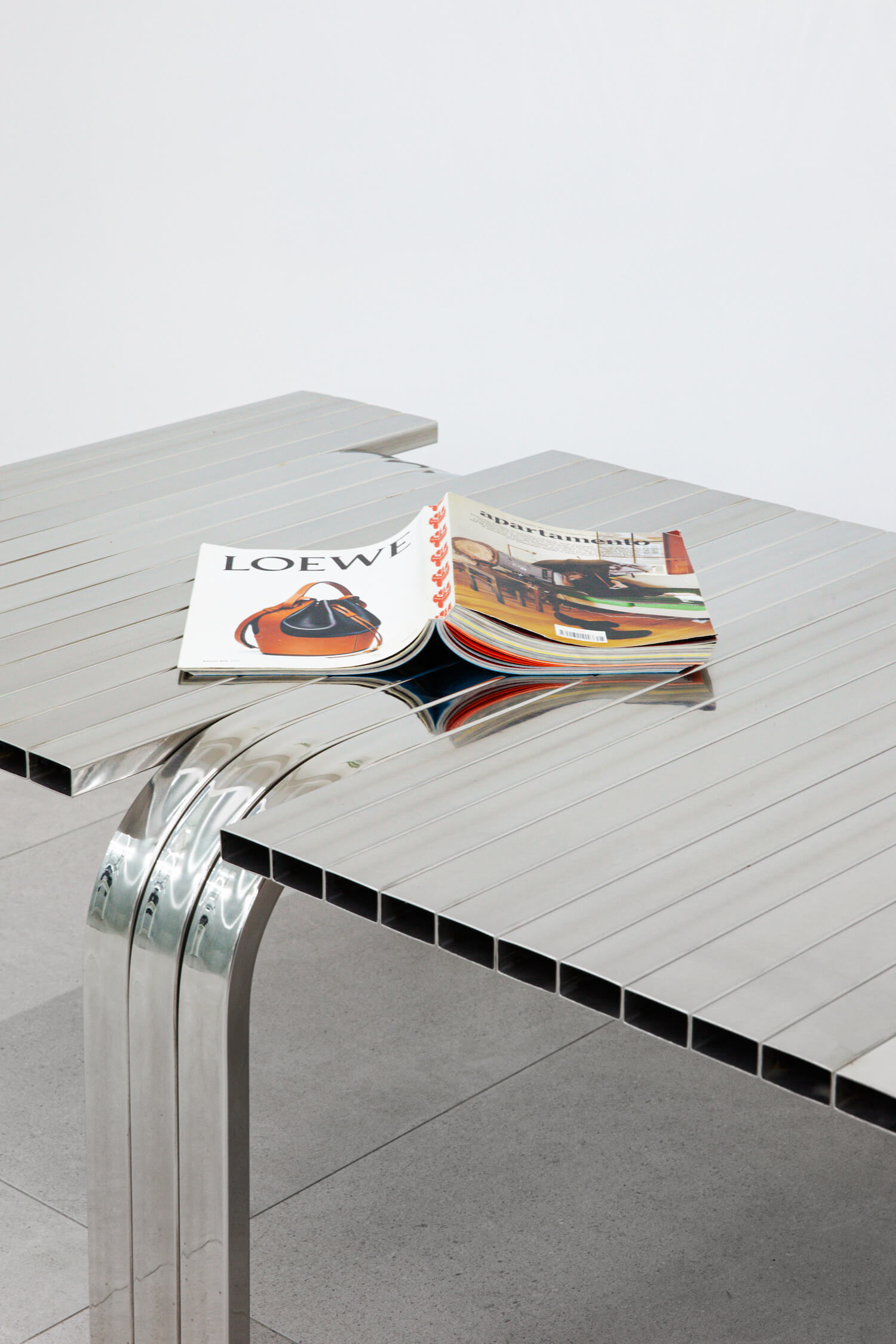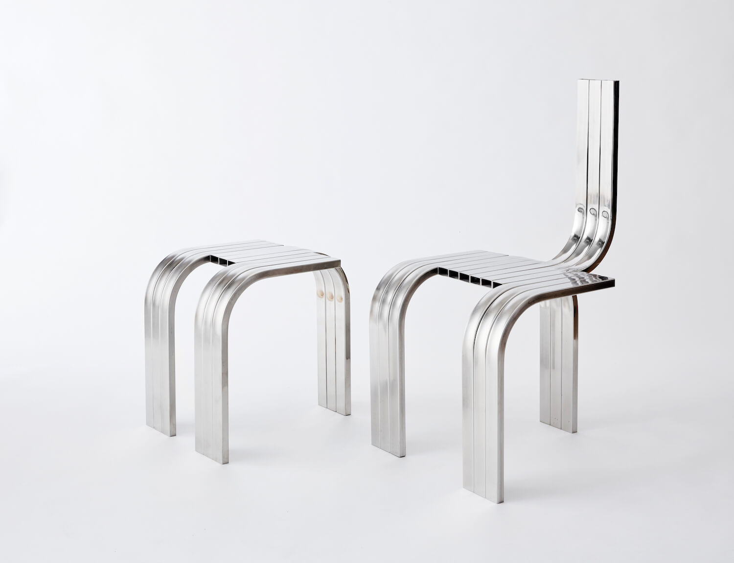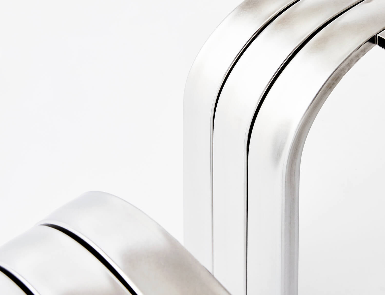 전통적으로 건축, 인테리어, 가구 등의 다양한 프로젝트에서 구조적 요소로 사용되고 있으며 bend시리즈를 통해 산업용 파이프를 절단 및 굽힘 기술을 사용해 미니멀리즘 가구로 탈바꿈시킵니다. 스테인리스 스틸의 고유 품질을 강조하기 위해 컬렉션에 배치된 파이프 표면은 의도적인 스크래치나 반사가 나타나 세련된 개성을 더해줍니다.