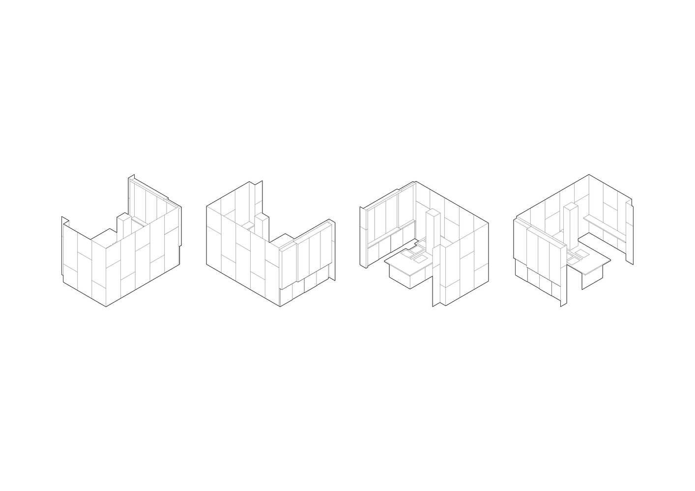 이 시스템은 자연 발생을 리모델링하고 파라메트릭 소프트웨어를 사용하여 시뮬레이션된 알고리즘을 기반으로 합니다. 성장 진화에 대한 수학적 이해는 중앙의 조명설치뿐만 아니라 양쪽에도 사용되었습니다. 카운터 주변의 내부에도 비슷한 아이디어를 적용합니다.