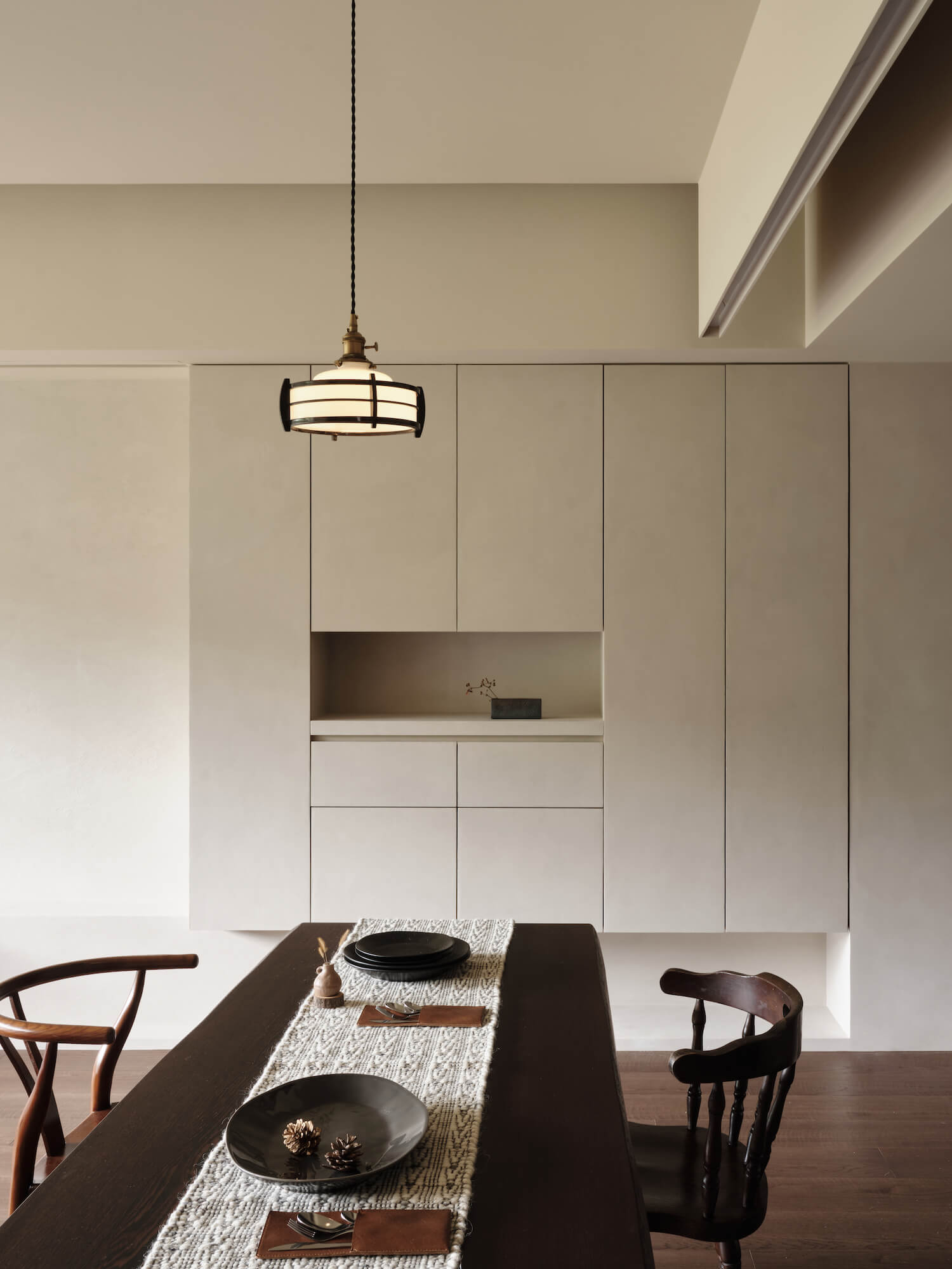 대만 타이페이에 위치한 주택은 집의 평온함을 위해 장식을 없애는 Beitou의 홈 스타일의 특징이 잘 나타납니다. 불필요한 장식을 없애 더 넓은 환경을 만들며 이는 조화와 휴식을 불러일으키는 장점을 갖고 있습니다. 또한, 천연 목재와 세심한 조명을 사용하여 차분하고 평화로운 분위기가 연출됩니다. 신혼부부부터 아이가 있는 가정에 이르기까지 다양한 가정에 어울리는 스타일로 현재까지 꾸준히 사랑받고 있는 인테리어입니다.