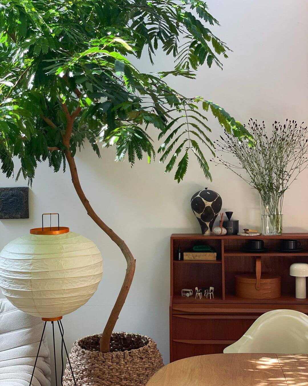 빈티지하면서 우드와 식물의 조합이 마음을 평화롭게 만들어주는 인테리어입니다. 동일한 가구를 3개 이상 두지 않고 다양한 가구를 배치하여 풍성한 디자인을 완성시킨 인테리어로 식물, 우드인테리어를 좋아하시는 분들에게 추천드리는 디자인이에요.