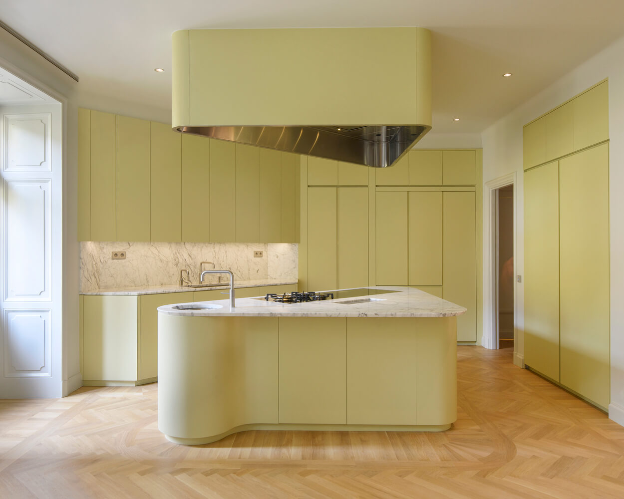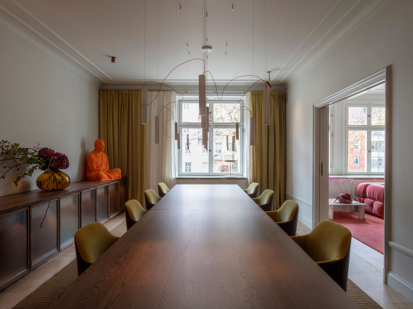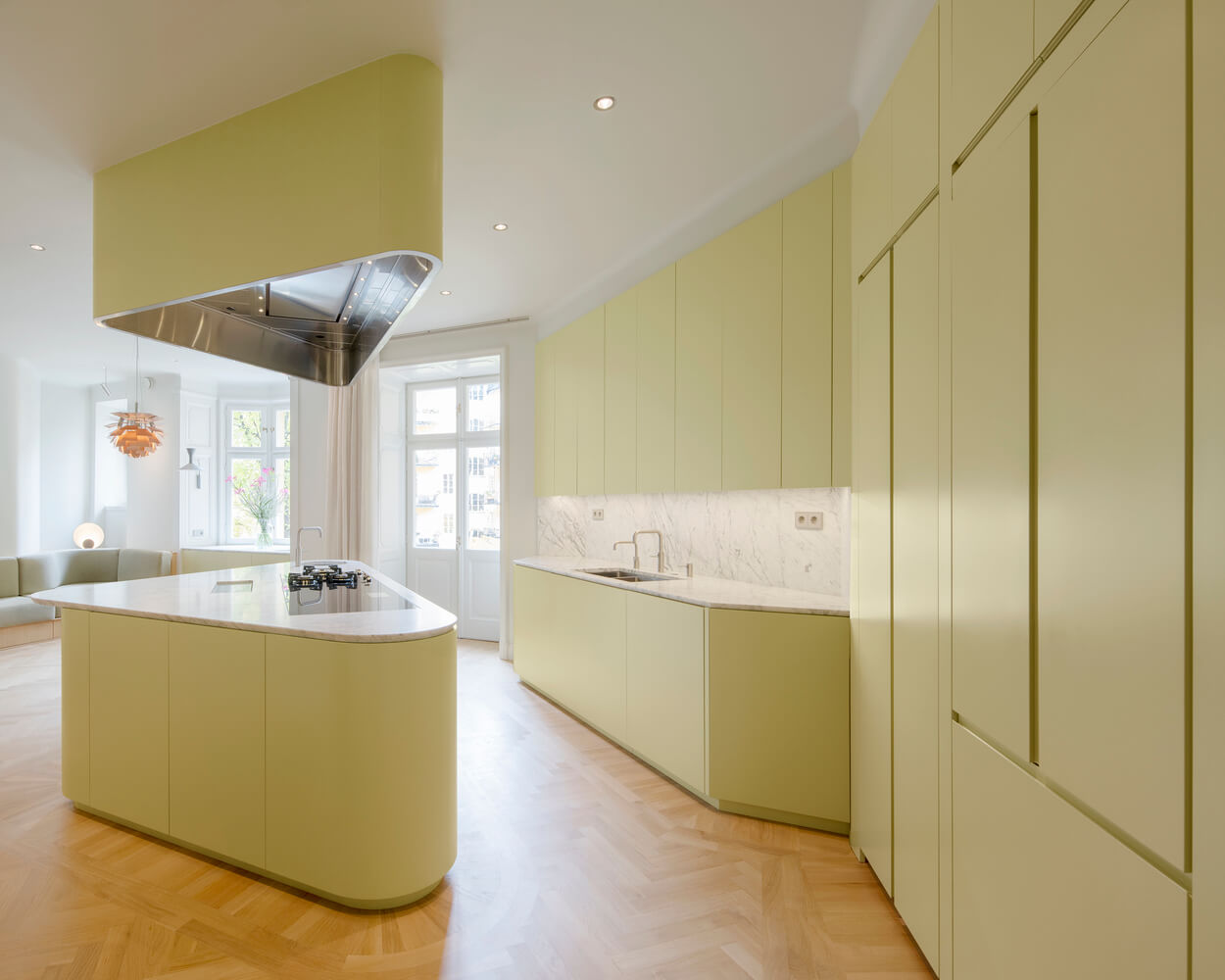이 리모델링의 목표는 가족이 손님을 맞이하는 동시에 프라이버시를 제공할 수 있는 집을 만드는 것입니다. 10대 딸을 둔 부부는 차분하면서도 아늑한 우아함을 지닌 집을 원했습니다. 230㎡ 규모의 아파트는 스톡홀름 중심부에 위치한 20세기 초 건물 두 개의 작은 유닛을 합친 것입니다.