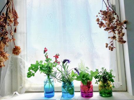 - 작은 화분을 창이나 테이블에 올려 놓거나 생화를 컵,유리잔 등에 조금씩 꽂아 연출하기