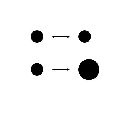 둘째, 두 점의 크기가 서로 다른 경우 대부분 큰 점에서 작은 점으로 주의력이 이동합니다.