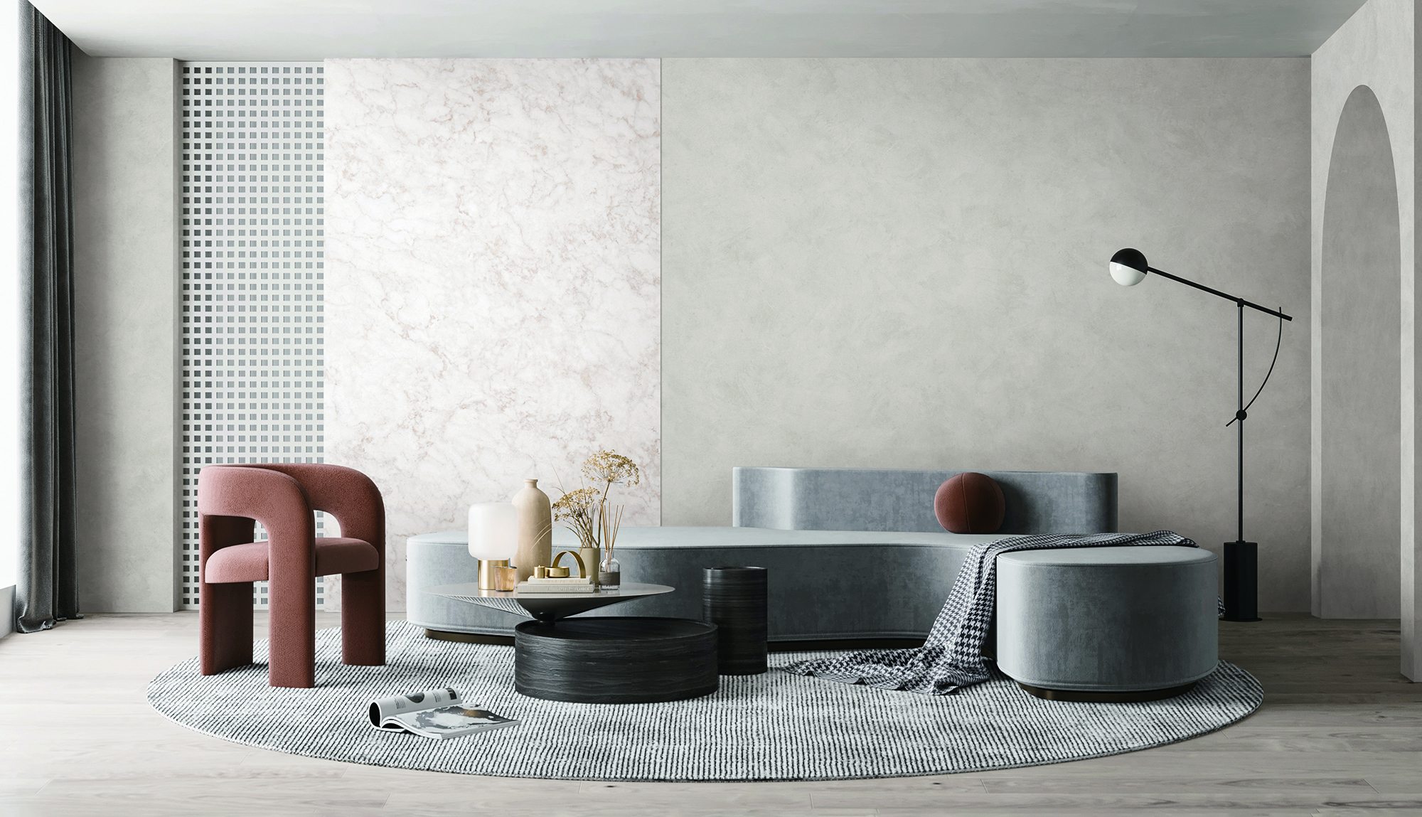 원형은 부드러움, 원만함 등과 같이 편안하고 안정적인 느낌을 줍니다. 그렇기 때문에 실내 인테리어에 있어서 삼각형이나 사각형에서 느껴지는 엄격함보다는 공간에 여유로움과 편안한 시각적 효과를 연출하는데 효과적입니다.