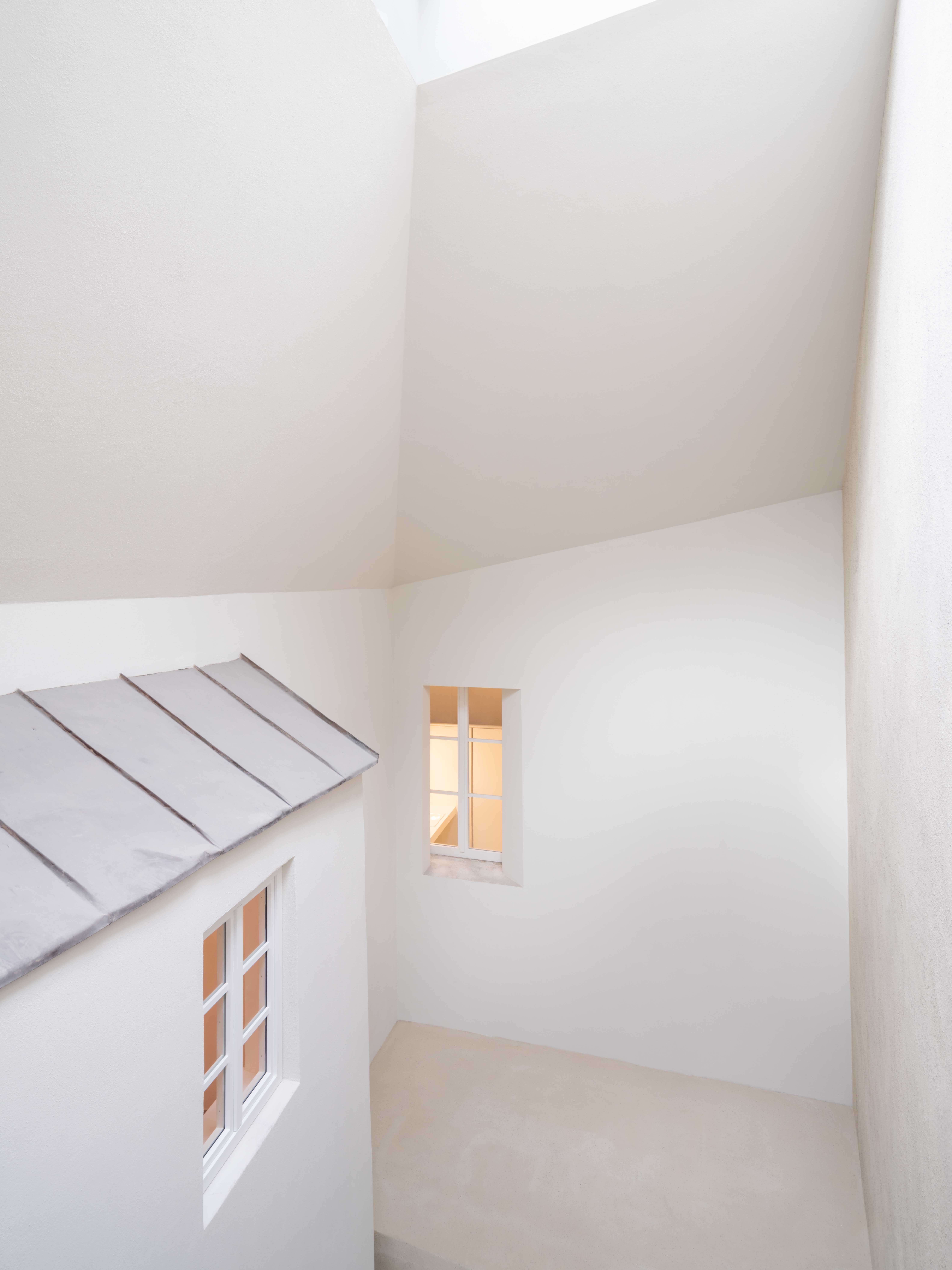 옥탑방, 주택 등에서 가끔 볼 수 있는 경사천장, 사선의 벽, 창문, 가구배치, 벽지의 문양 등이 있습니다.