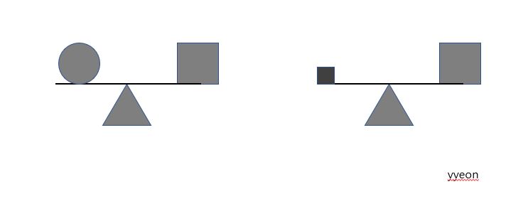 수직축을 중심으로 형태, 크기, 위치 등이 동일하게 배치된 상태는 아니지만 시각적인 무게는 균등하게 느껴지는 상태를 말합니다. 이는 비정형적 균형 혹은 능동적 균형이라고도 부릅니다.