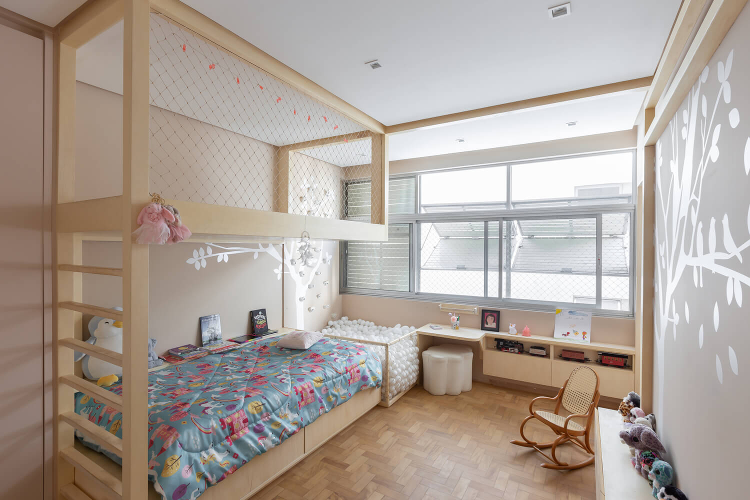 반면, 샤케이는 건축과 풍경을 구성하기 위해 배경 요소를 사용하는 프로젝트에서 “차용된 풍경”으로 번역될 수 있습니다. 발코니에서는 화려한 나무 꼭대기를 볼 수 있는데, 조경 프로젝트는 발코니 전체를 정원으로 만드는 것을 디자인 컨셉으로 삼았습니다. 이는 상파울루의 완전한 도시화 구역에 있는 주택 내부의 광대한 녹지로서 내부 요소와 외부 요소 사이의 배열을 가져옵니다.