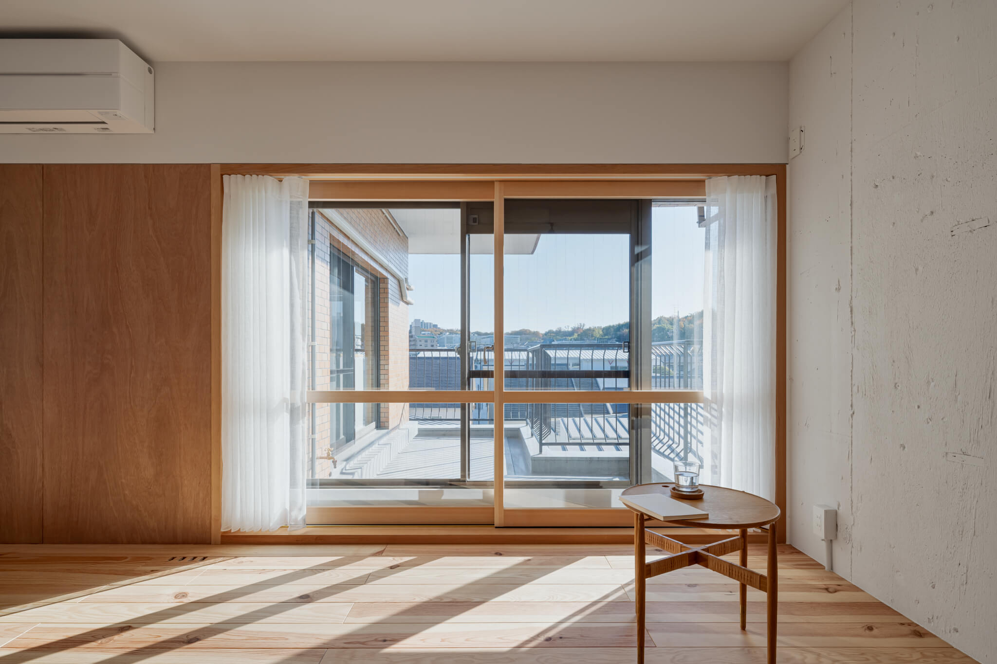 일본 나고야에 위치한 미니멀리즘 아파트입니다. 남향으로 넓게 트인 구조와 삼면에 창이 있어 자연 채광이 좋으며 신선한 공기가 유입됩니다. 이런 환경적 장점을 활용하며 형태를 변경하기 위해 기존의 오래된 내부 부속품을 제거하기로 결정했습니다.