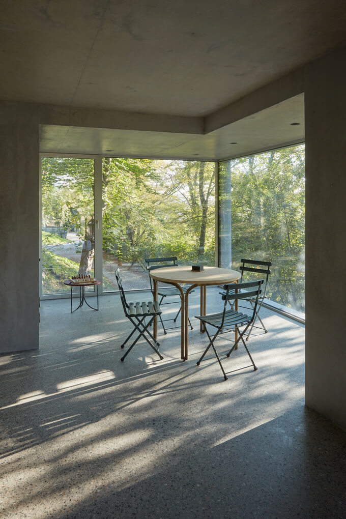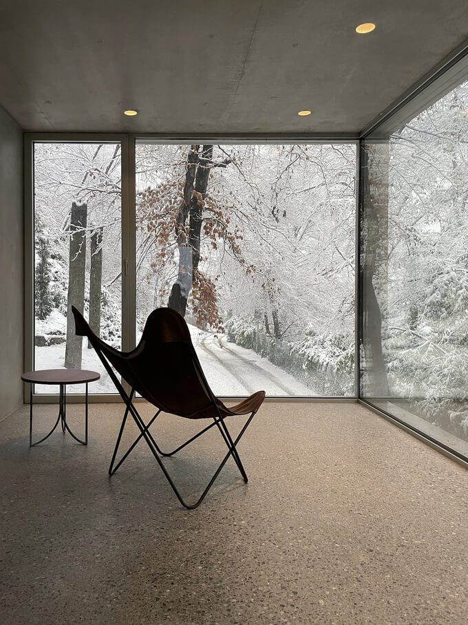 스위스 멘드리시오에 위치한 미니멀리즘 주택입니다. 산 니콜라오의 역사적인 성당이 내려다보이는 절벽과 울창한 나무가 늘어선 길, 자연 환기가 잘 되는 지하 공간인 전통적인 '그로티'가 곳곳에 있는 지역이 이 프로젝트의 배경이 되었습니다.