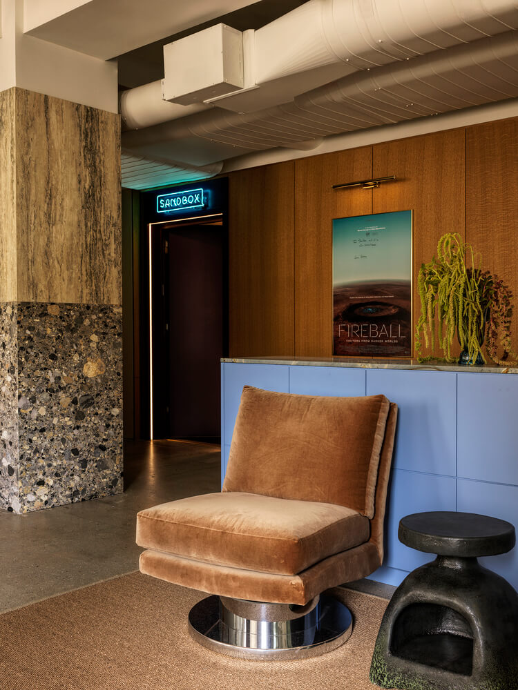 스토리텔링에 영감을 받은 이 사무실은 스톡홀름과 암스테르담의 시설이 풍부하면서도 친밀한 초기 영화관, 아르데코 시네마, 덴마크 모더니스트 디자이너의 건축적 색채에서 영향을 받았습니다.