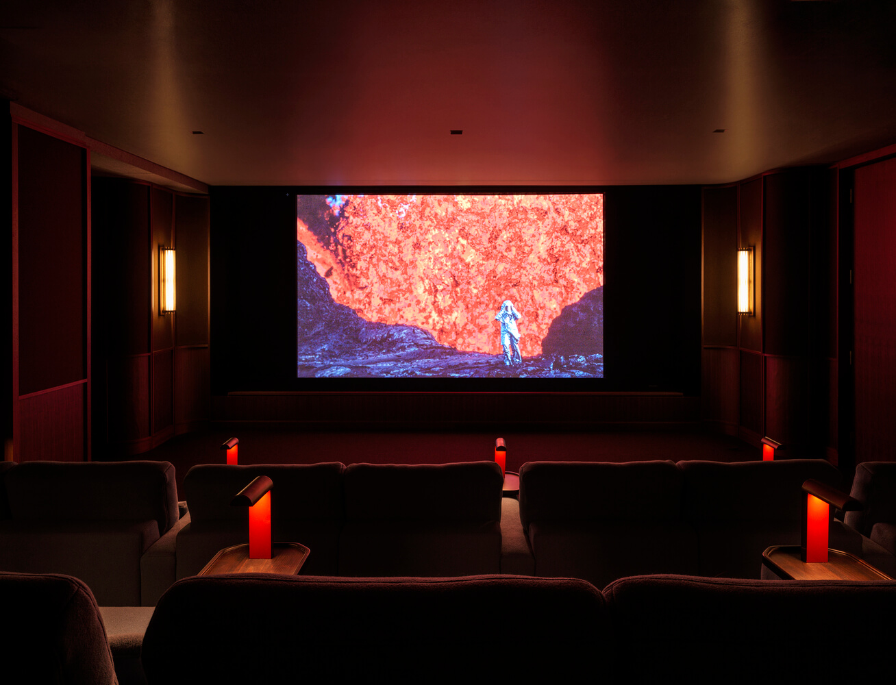 공간의 창의적인 심장인 아르데코 풍 영화관입니다. 최첨단 서라운드 사운드 시설을 갖추고 있으며 사운드 엔지니어 팀과 협력하여 패널 시리즈와 음향 장비, 댐퍼 등 장비를 숨겨 완전히 몰입적인 환경을 만들었습니다. 3단으로 높이 솟아오른 풀 레크라이닝 페리윙클 상영실 좌석은 맞춤제작 되었으며 통합형 테이블 라이트가 특징입니다.