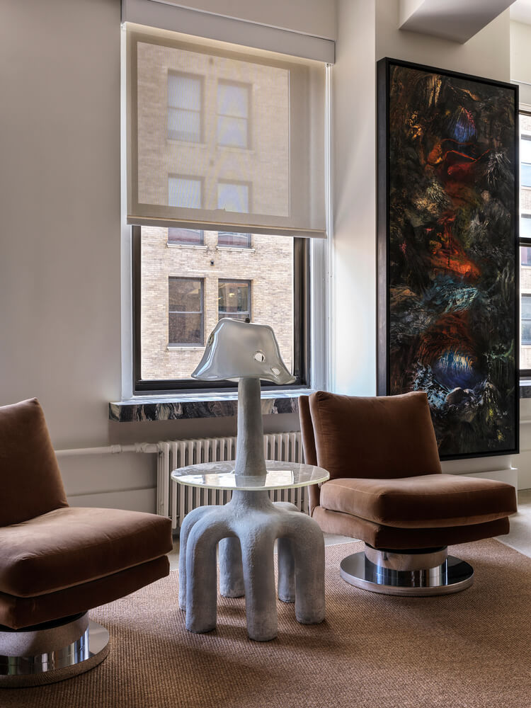 스토리텔링에 영감을 받은 이 사무실은 스톡홀름과 암스테르담의 시설이 풍부하면서도 친밀한 초기 영화관, 아르데코 시네마, 덴마크 모더니스트 디자이너의 건축적 색채에서 영향을 받았습니다.