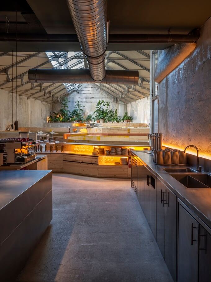 TRAMO는 거의 100% 에너지 자급자족이 가능한 레스토랑입니다. 또한 PPA(전력구매계약) 공간으로 친환경 에너지를 생산합니다. 트라모는 미스트 시스템을 사용하여 레스토랑의 온도와 습도를 자연적으로 관리합니다. 이 안개분무는 공간에 있는 식물에 물을 줄 뿐만 아니라 공간에 습기를 공급하기도 합니다. 이 공간에는 빗물, 싱크대 물, 땅에서 나오는 수분을 재사용하는 다양한 시스템도 있습니다.