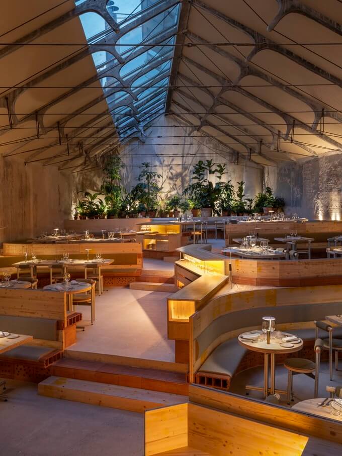 TRAMO는 거의 100% 에너지 자급자족이 가능한 레스토랑입니다. 또한 PPA(전력구매계약) 공간으로 친환경 에너지를 생산합니다. 트라모는 미스트 시스템을 사용하여 레스토랑의 온도와 습도를 자연적으로 관리합니다. 이 안개분무는 공간에 있는 식물에 물을 줄 뿐만 아니라 공간에 습기를 공급하기도 합니다. 이 공간에는 빗물, 싱크대 물, 땅에서 나오는 수분을 재사용하는 다양한 시스템도 있습니다.