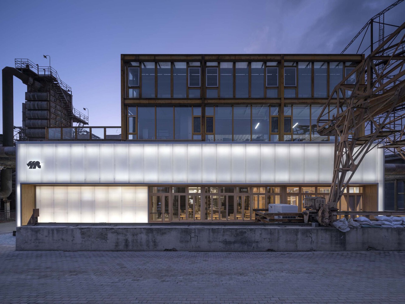 중국 베이징에 위치한 리노베이션 카페로 가장 큰 특징은 폴리카보네이트를 건축 외부 마감으로 사용하여 세련된 느낌을 연출합니다. 또한, 계획 시 과거 화로 탱크를 그대로 두어 오래된 것과 새로 리모델링 한 새로운 것을 한 공간에서 느낄 수 있도록 하였습니다.