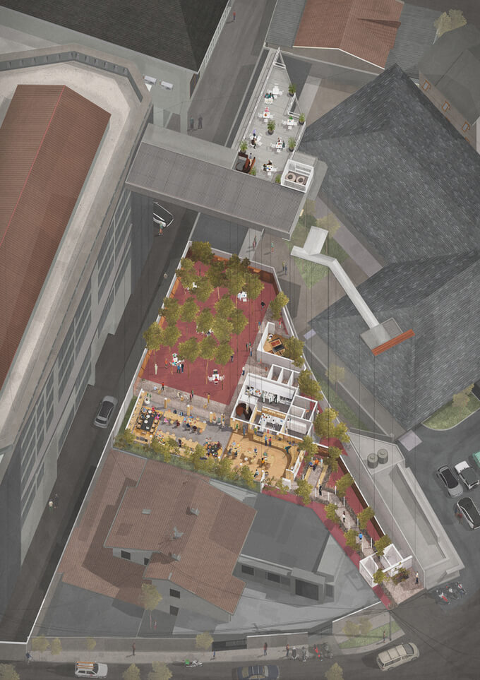 도시의 혼돈 속에서 독특한 안식처를 만들고자 하는 열망에서 시작된 프로젝트로 좁은 얼굴과 예측할 수 없는 넓은 포켓 면적이 돋보입니다. 이 카페는 바쁜 환경 속에서 숨 쉴 수 있는 공간을 디자인할 수 있는 흔치 않은 기회를 제공합니다.