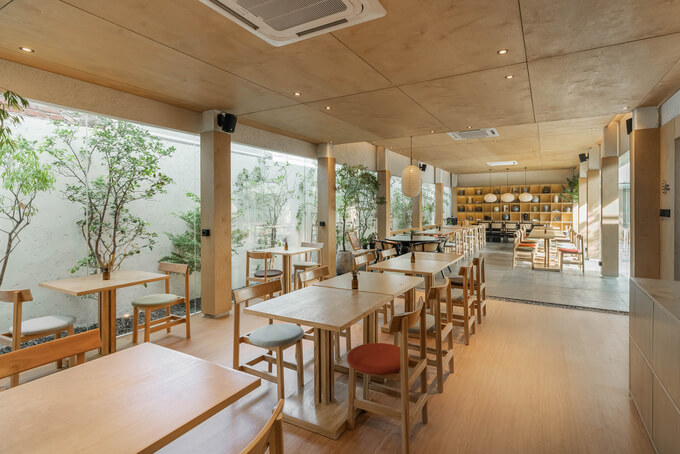 바이아사 카페의 인테리어는 오두막집을 연상시키는 아늑하고 포근한 분위기를 연출하도록 디자인되었습니다. 따뜻한 조명과 자연스러운 색감과 같은 시각적 요소가 전체적인 아늑함을 더합니다. 집과 같은 느낌을 주는 데 중점을 둔 인테리어로 포근하고 매력적인 공간에 초점을 맞췄습니다. 천장의 다양한 높이와 확장감은 방문객을 카페로 안내하는 공간적 시퀀스를 만들어 방문객을 발견의 여정으로 이끌고 있습니다.