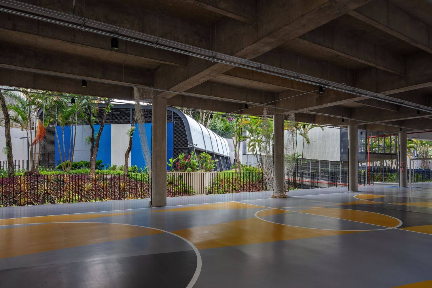 In addition to the existing indoor court, the project created two more uncovered courts, reactivating the access to the building's roof. The retrofit process in this case was highlighted due to new rules regarding safety and accessibility: the installation of elevators, the renovation of emergency stairs, and several other elements that needed to be adapted.