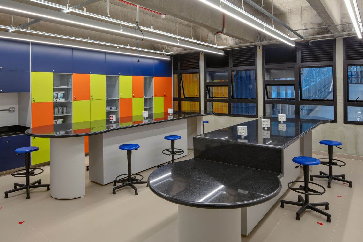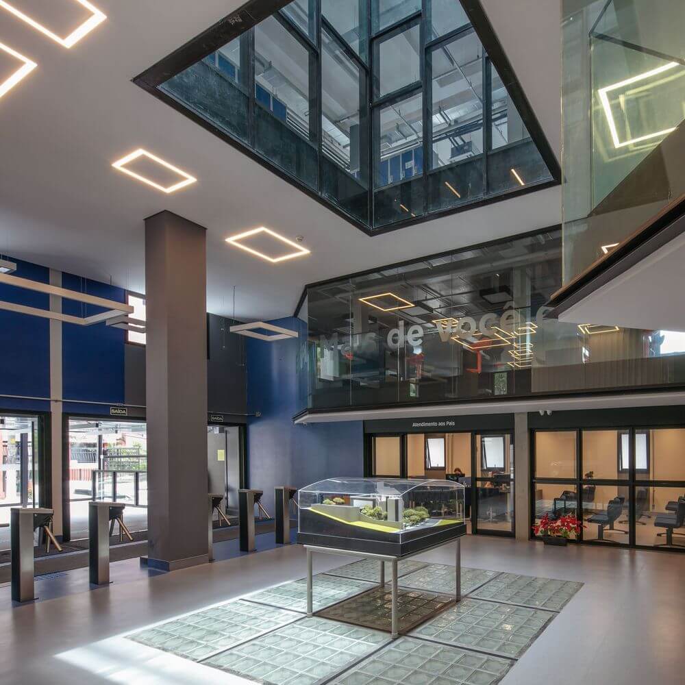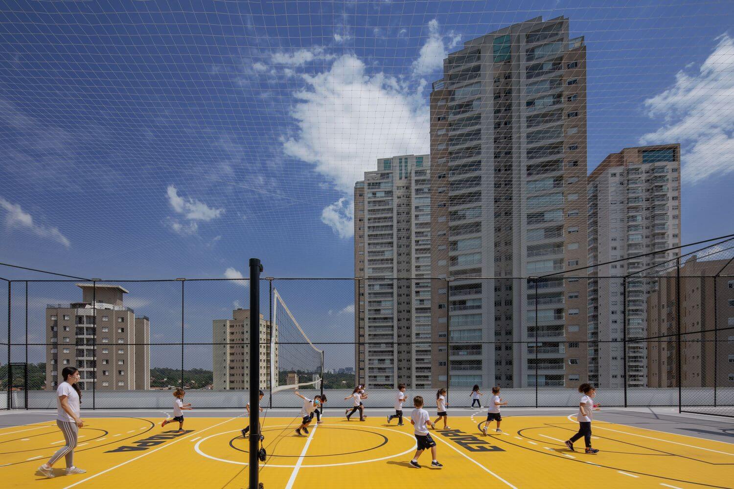 “We took the use of the lot to the maximum allowed by current legislation, adding two floors to the administrative block. In this way, it was possible to accommodate the project's extensive program, which ranges from kindergarten to high school. In this block, designed in a square plan, the central void was expanded, flooding all the floors with natural light”, says Artur Katchborian, architect and partner of Biselli Katchborian.