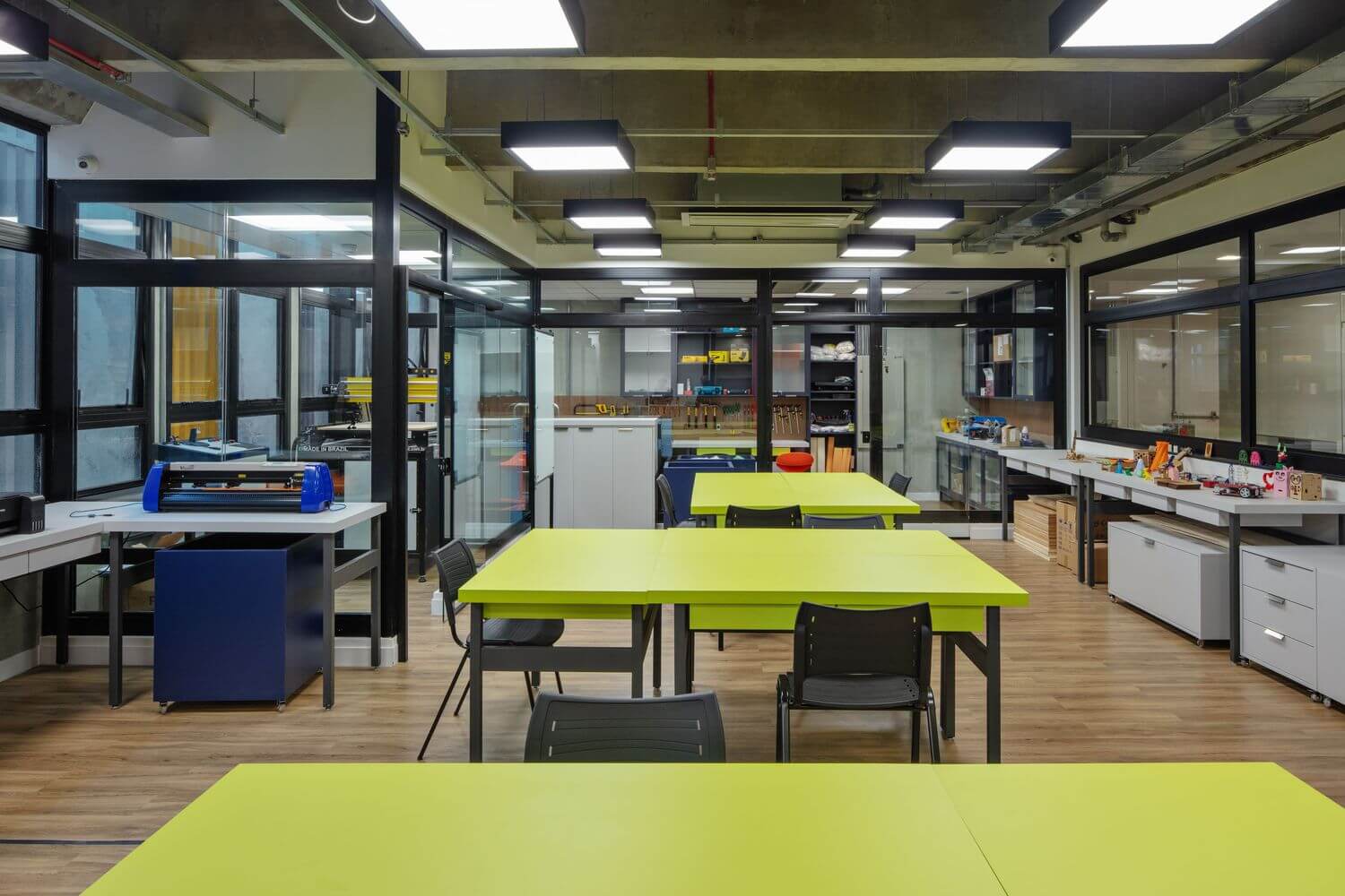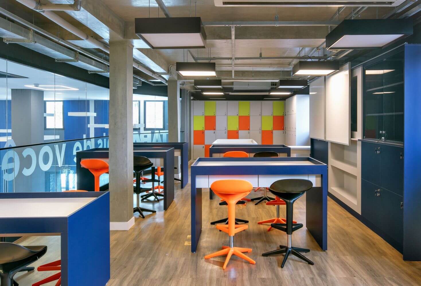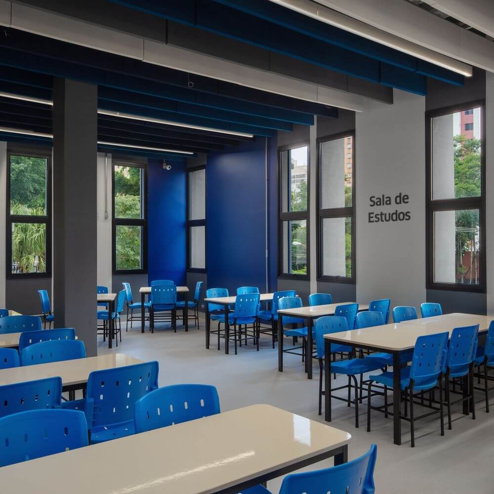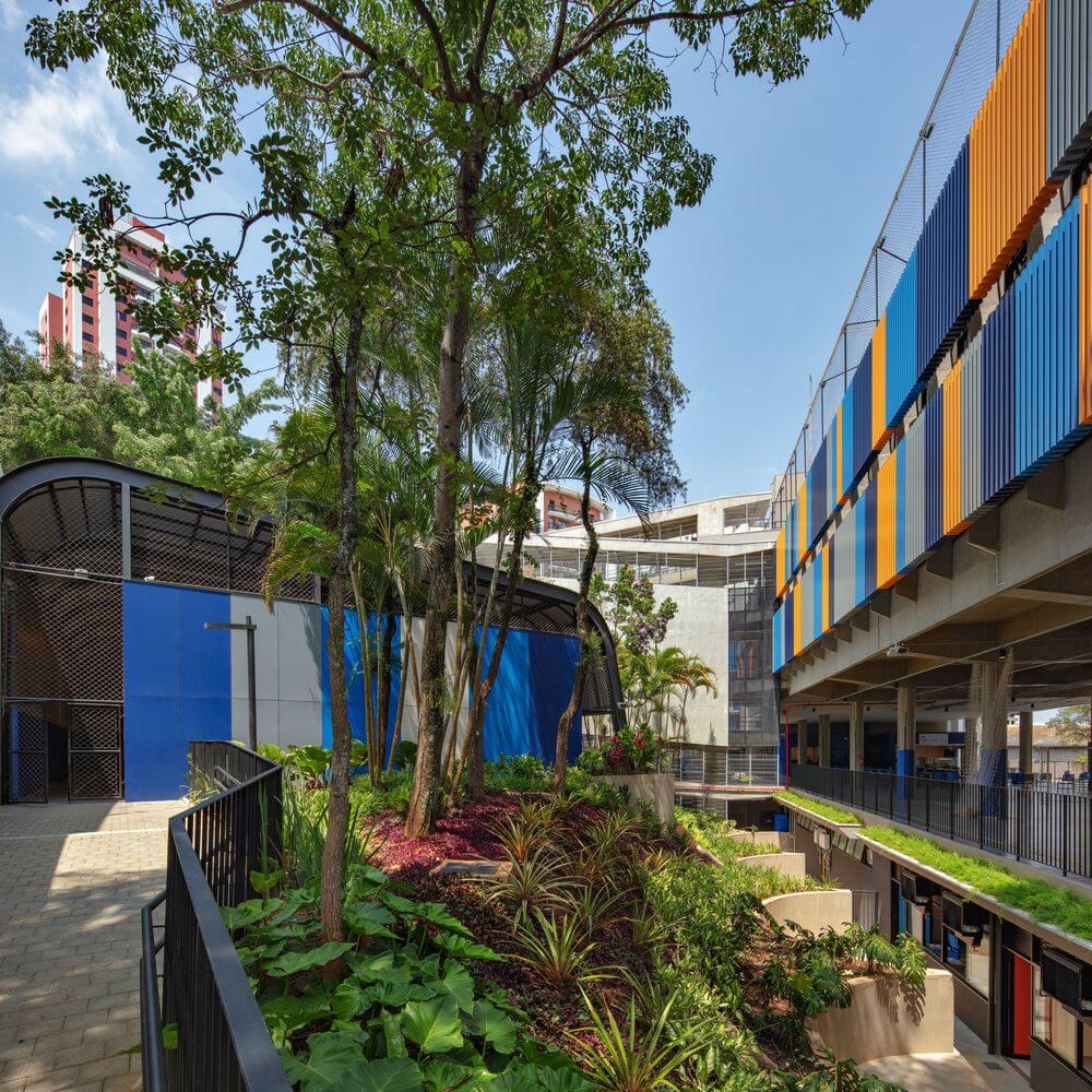 “We took the use of the lot to the maximum allowed by current legislation, adding two floors to the administrative block. In this way, it was possible to accommodate the project's extensive program, which ranges from kindergarten to high school. In this block, designed in a square plan, the central void was expanded, flooding all the floors with natural light”, says Artur Katchborian, architect and partner of Biselli Katchborian.