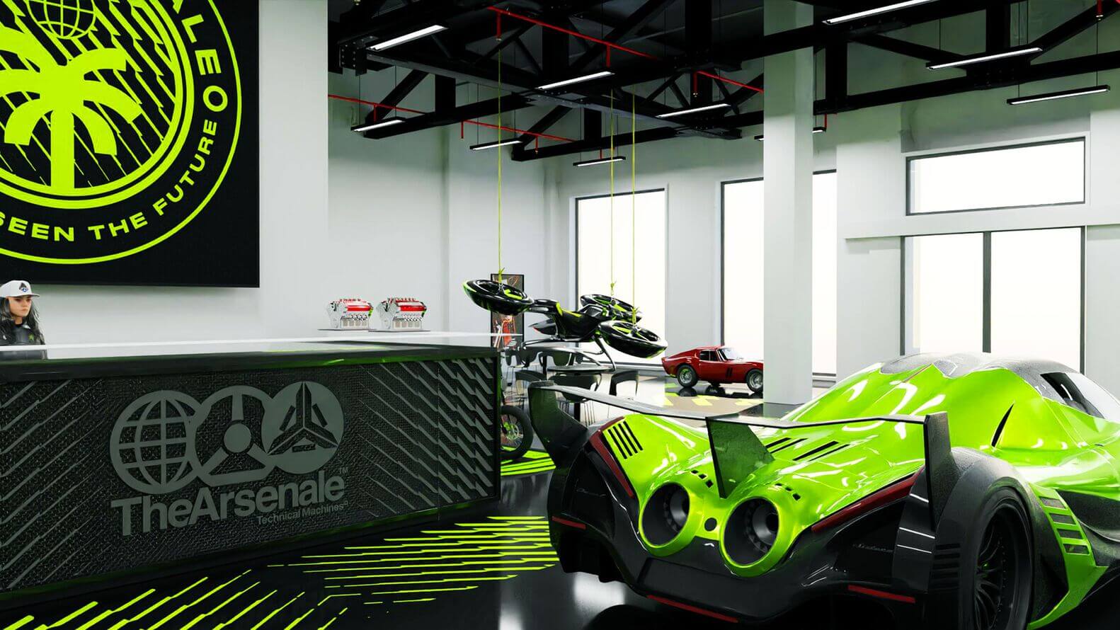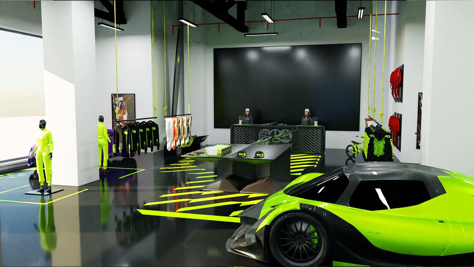 매장의 핵심은 세계에서 가장 탐나는 럭셔리 자동차 컬렉션입니다. 이 외 슈퍼카, 요트, 개인용 제트기까지도 매장 디자인에 완벽하게 통합되어 중심을 차지합니다. 각각의 차량은 곡선과 디테일을 강조하기 위해 조명을 통해 예술 작품처럼 전시되지만 이는 단순한 갤러리 같은 전시가 아닙니다. 마니아와 호기심 많은 손님 모두가 기술과 디자인의 정점에 가까이 다가갈 수 있는 몰입형 경험입니다.