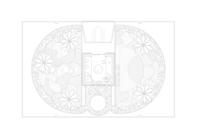 중앙 주방은 1층 중앙에서 제어할 수 있는 4개의 다른 파티오와 마주하고 있으며, 대칭적인 공간은 집의 중심이자 생활의 중심을 형성합니다. 주방은 거실과 사무실 공간으로 통하는 원형으로 1층과 시각적으로 연결됩니다. 위로 올라갈수록 광활한 자연 한가운데 고립된 듯한 프라이빗한 느낌이 들며, 마지막 층에서는 풍경을 감상할 수 있는 작은 공간까지 이어집니다.