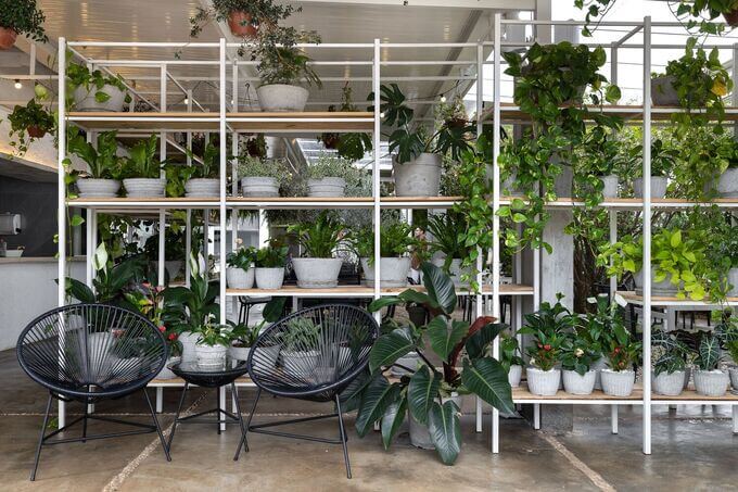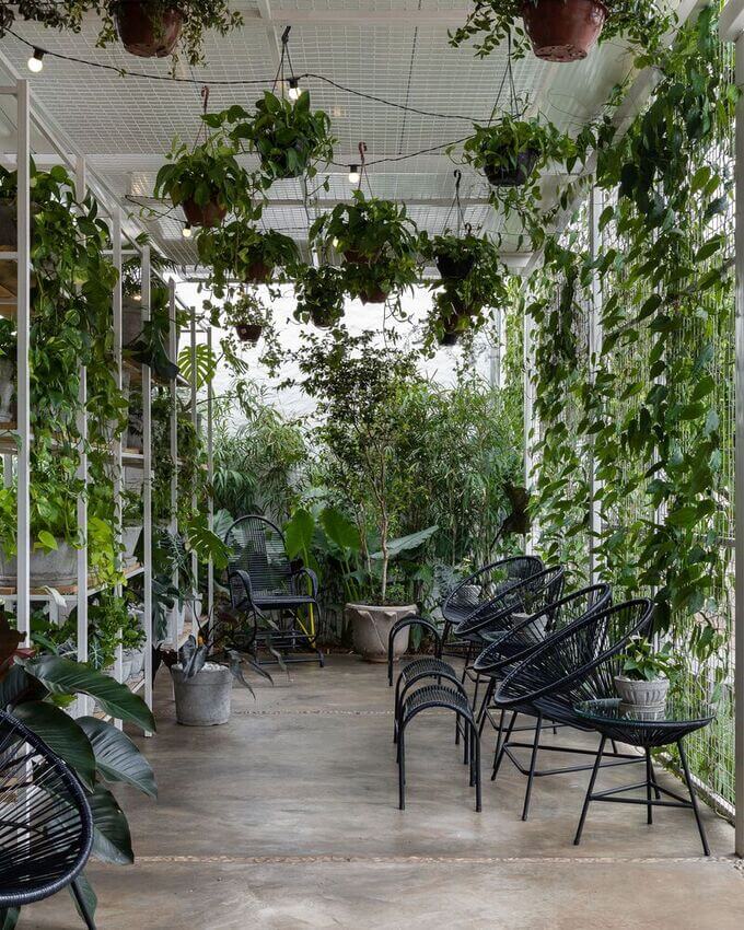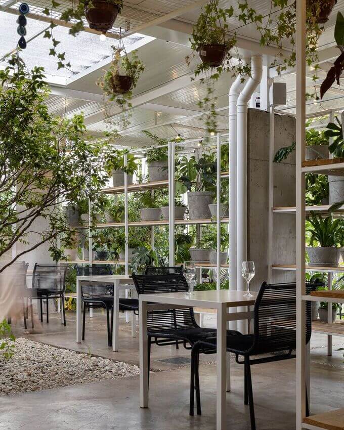 취미로 식물을 심고 가꾸는 것을 즐기는 주인은 이 공간을 묘목을 고객에게 판매하는 종묘장으로 탈바꿈시켜 레스토랑의 조경을 끊임없이 변화시키고 있습니다.