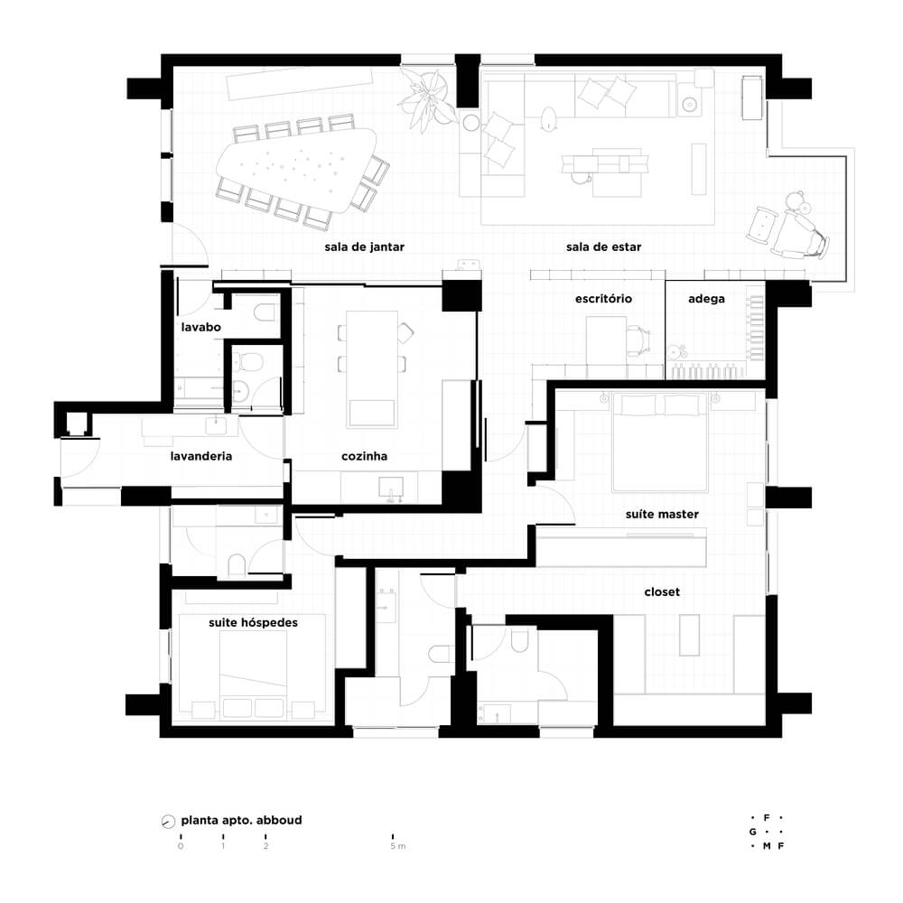 상파울루 어느 지역에 위치한 아파트는 마감과 내부 조직의 관점에서 공간을 리모델링하는 동시에 60년대 건물의 원래 평면도의 특성을 인식하려고 했습니다