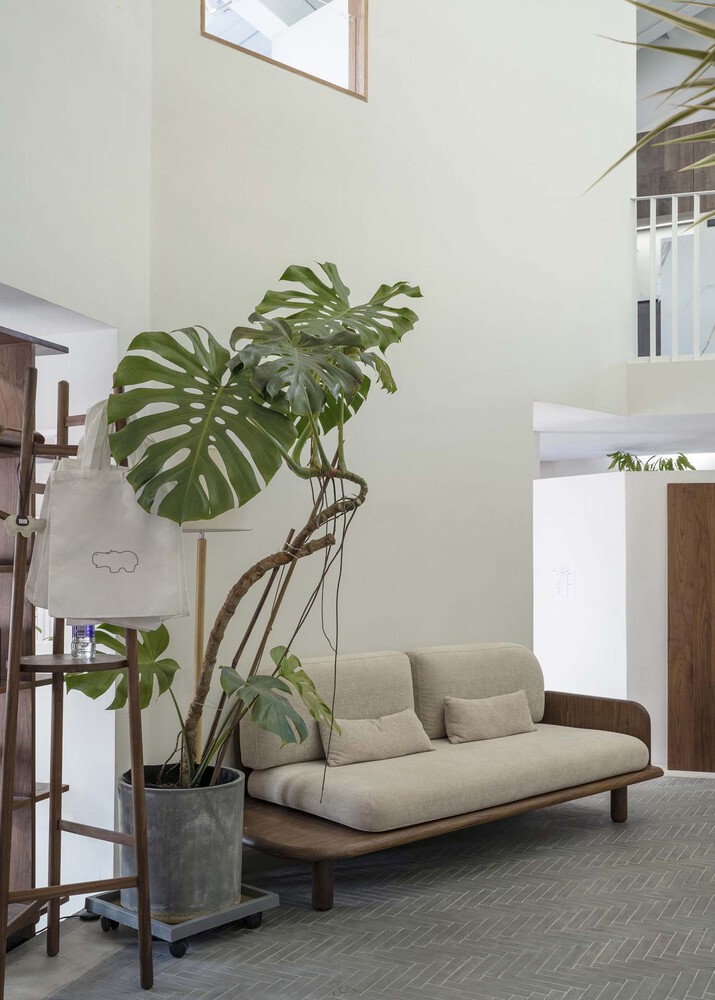 해당 사례는 중국 베이징에 위치한 목재 가구 사무실로 제품 전시 공간, 사무 공간을 포함한 휴식 공간으로 구성되어 있습니다. 단층이 아닌 복층 공간으로 방의 크기는 작으며 중앙에는 4개의 기둥이 있는 형태입니다.
