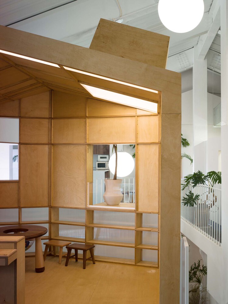 해당 사례는 중국 베이징에 위치한 목재 가구 사무실로 제품 전시 공간, 사무 공간을 포함한 휴식 공간으로 구성되어 있습니다. 단층이 아닌 복층 공간으로 방의 크기는 작으며 중앙에는 4개의 기둥이 있는 형태입니다.