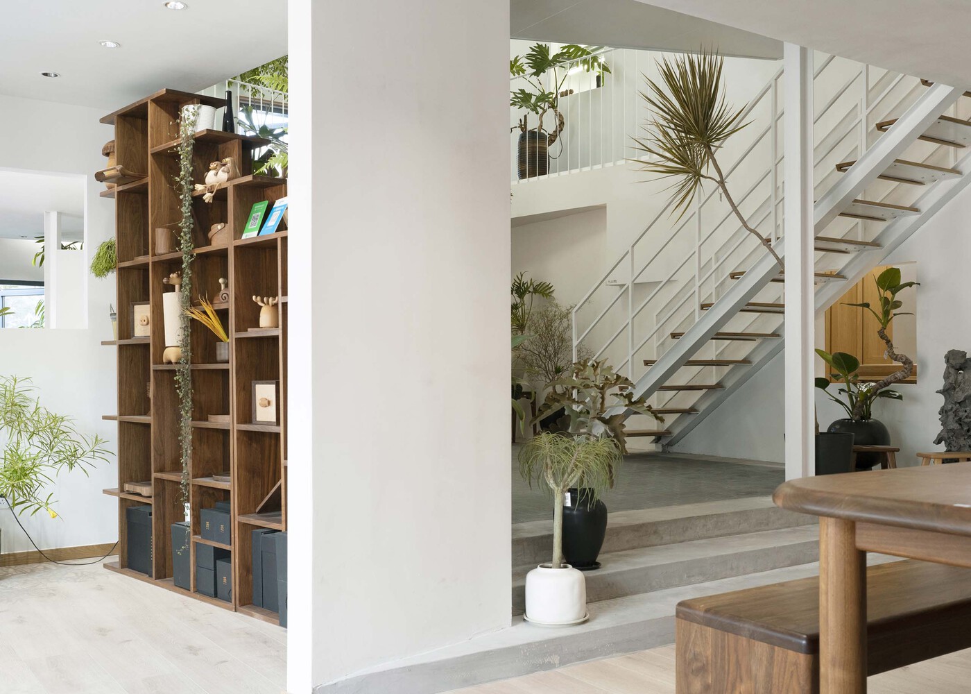 또한 곳곳에 있는 식물의 그린색이 포인트 색상이 되어 공간을 생동감 있고 활기차게 느껴지게 합니다.